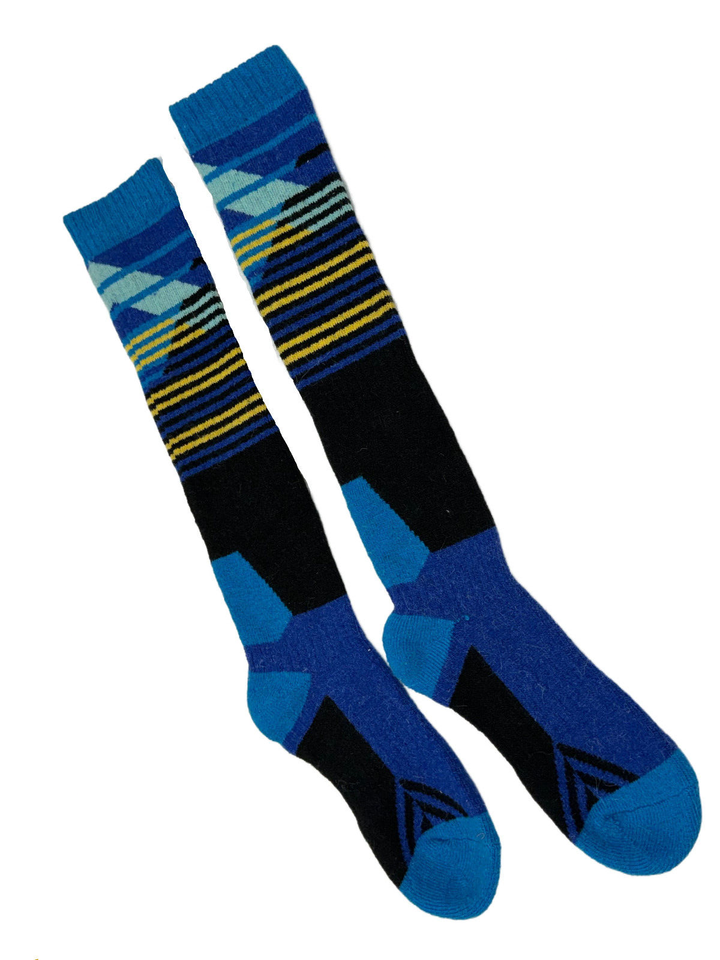 Ski Socks Merino Wool (70%) Blend Children 8-12 Years Medium Blue Black