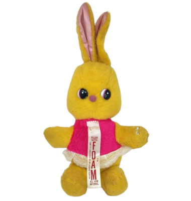 VINTAGE ATLANTA NOVELTY YELLOW PINK FOAM BUNNY RABBIT STUFFED ANIMAL PLUSH TOY