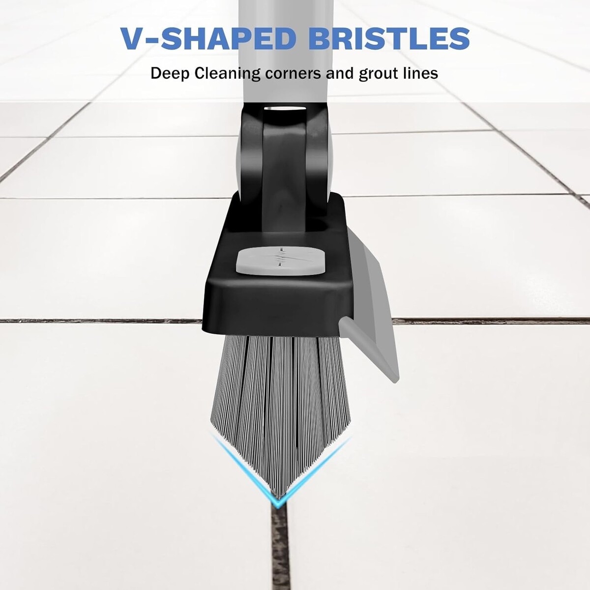 V SHAPED FLOOR BRUSH: This scrub brush features a "V" shaped brush head that easily cleans narrow tile grout line, hard-to-reach corners and crevices. Its stiff bristles resist bending and will not damage the surface. Easily remove dirt, stains and spots.