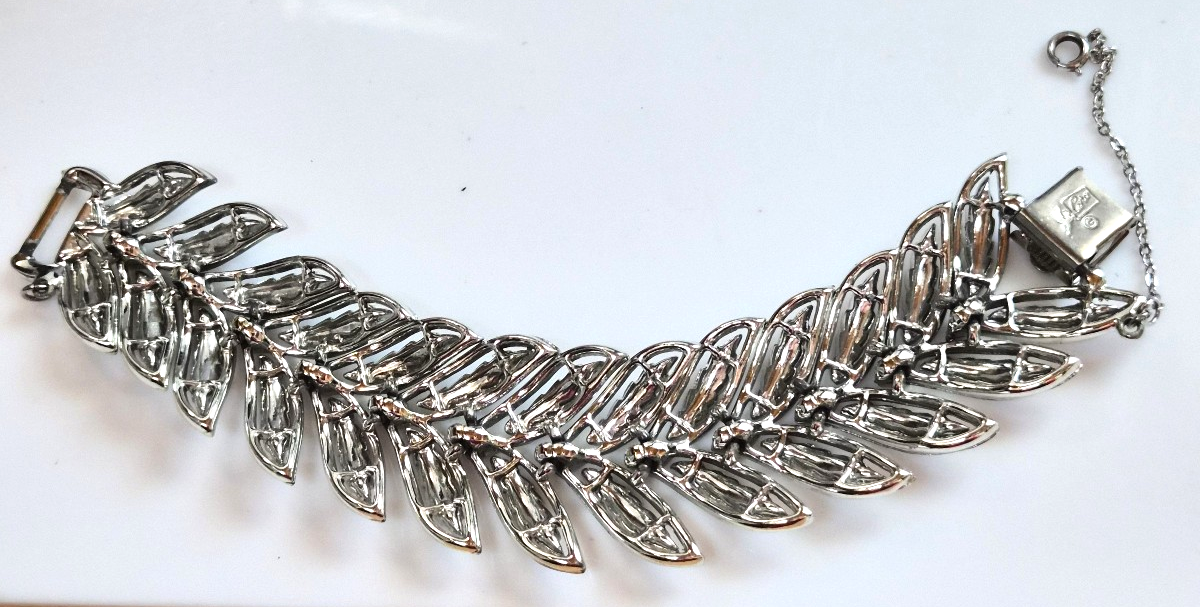 Vintage Coro Pegasus Silver-tone Double Leaf Bracelet W/Safety Chain 7.5"