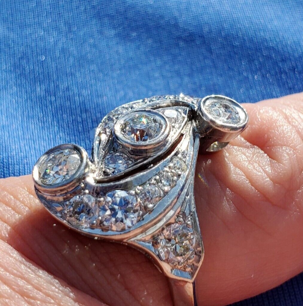 EARTH MINED DIAMOND European cut Deco Engagement Ring ORIGINAL Vintage 14K GOLD