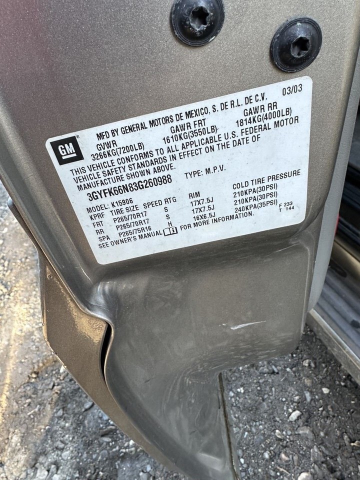 SUBURBAN 2500 02-08 w/high capacity (opt K47)
