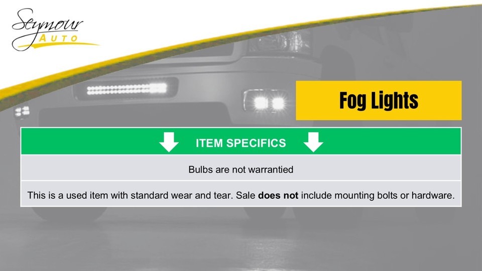 All parts listed as, Pick Up Only, will be held at Seymour Auto Wrecking (107 New Haven Rd, Seymour CT 06483) for the buyer.