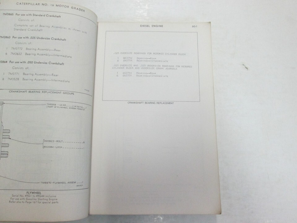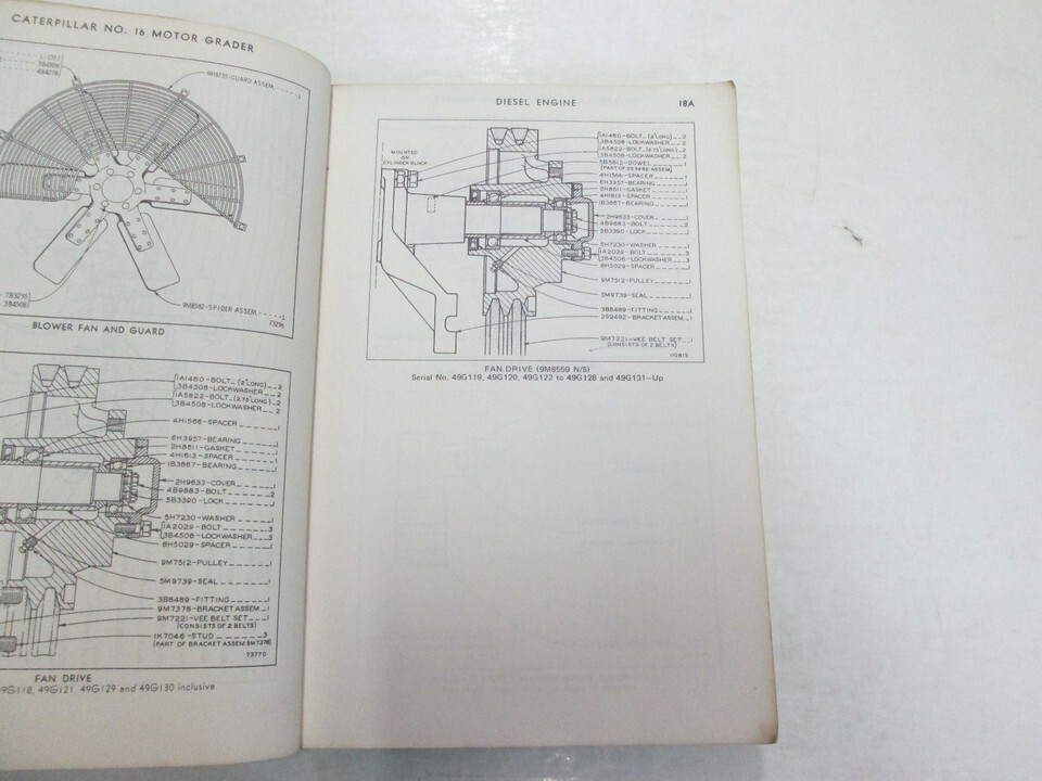 Caterpillar No. 16 Motor Grader Parts Book 49G1 TO 49G304 FADED WORN FACTORY OEM