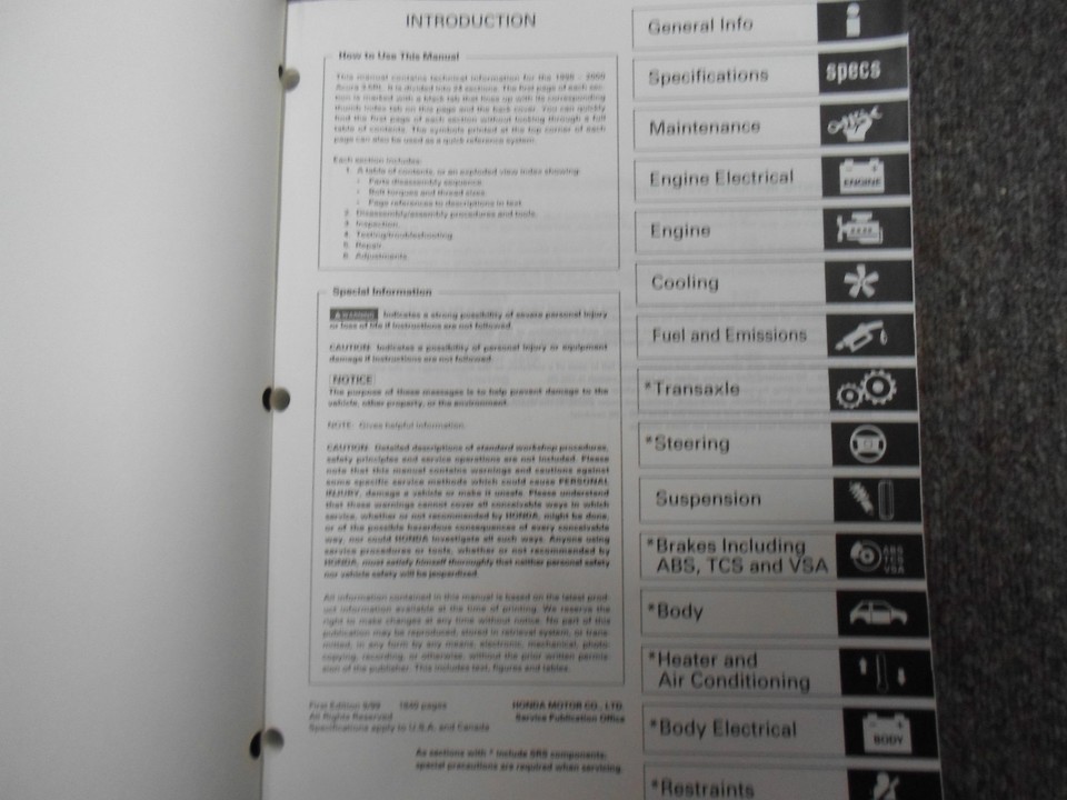 NUOVA RISTAMPA AUTORIZZATA DALLA FABBRICA 2001 MANUALE DI SERVIZIO ACURA 3.5RL
