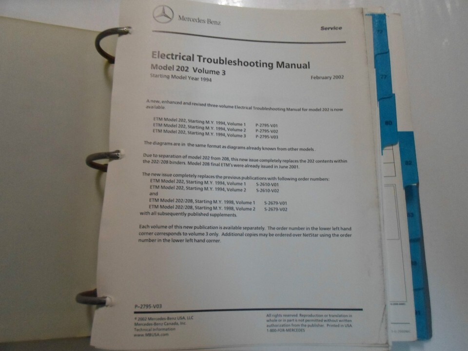 1994 95 96 97 1998 Mercedes Comme De My Model 202 Etm Manual 3V Factory Set O...