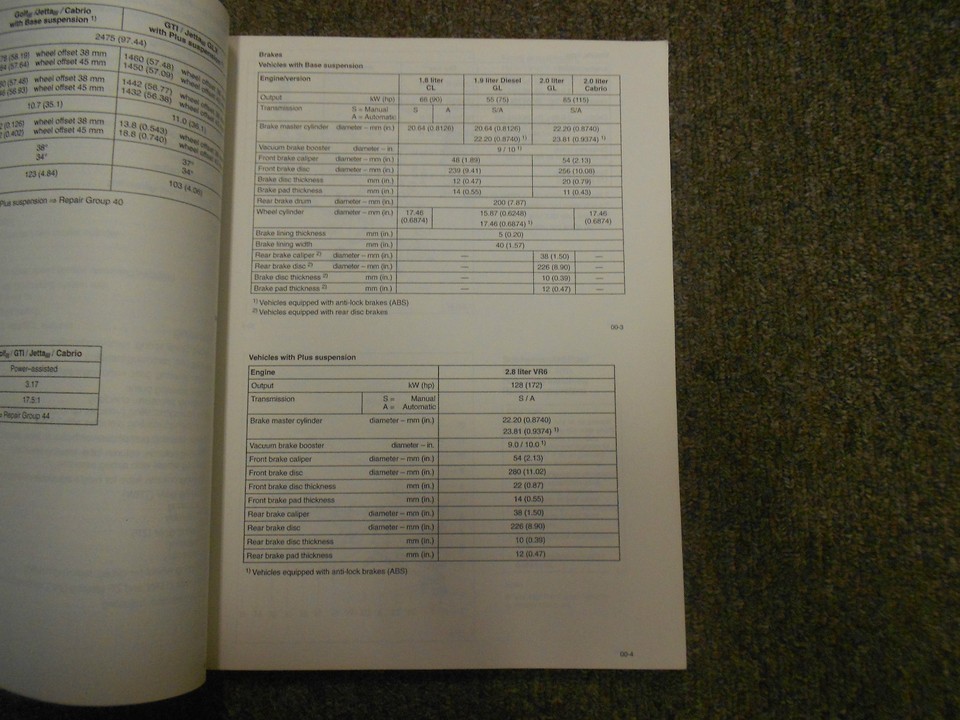 1993 94 95 96 97 VW Golf Gti Jetta Convertible Suspension Wheels Brakes Manua...