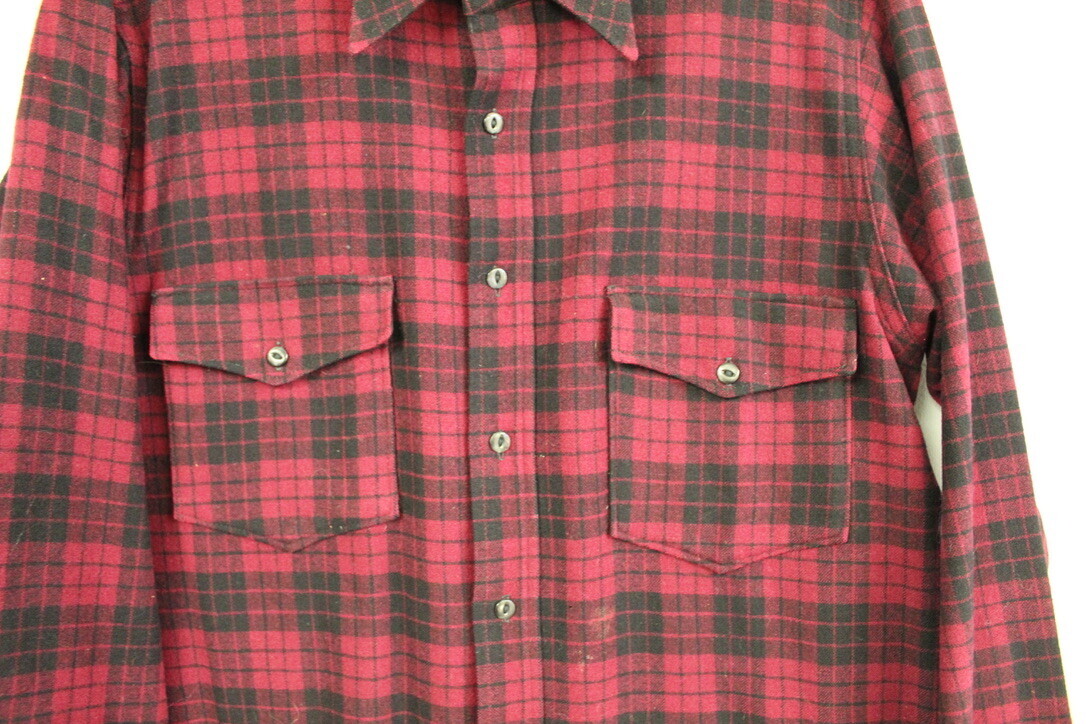 VTG 1950s Woolrich Red Black Plaid Wool Shirt Jacket Early Sheep Label Mens L 16