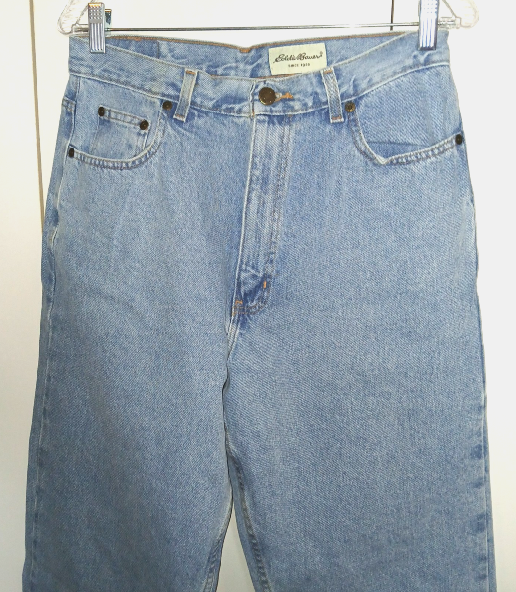 THIS IS A GREAT PAIR OF LADIES EDDIE BAUER 100% COTTON LIGHTL WASH STRAIGHT-LEG JEANS IN A SIZE 12 TALL. THEY ARE NEW WITH TAGS ALTHOUGH I THINK MAY BE CONSIDERED VINTAGE, NOT SURE.