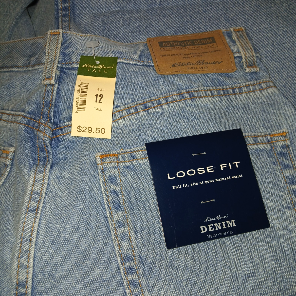 EDDIE BAUER LADIES 100% COTTON LOOSE FIT/FULL FIT DENIM JEANS-NWT-12 TALL-NICE