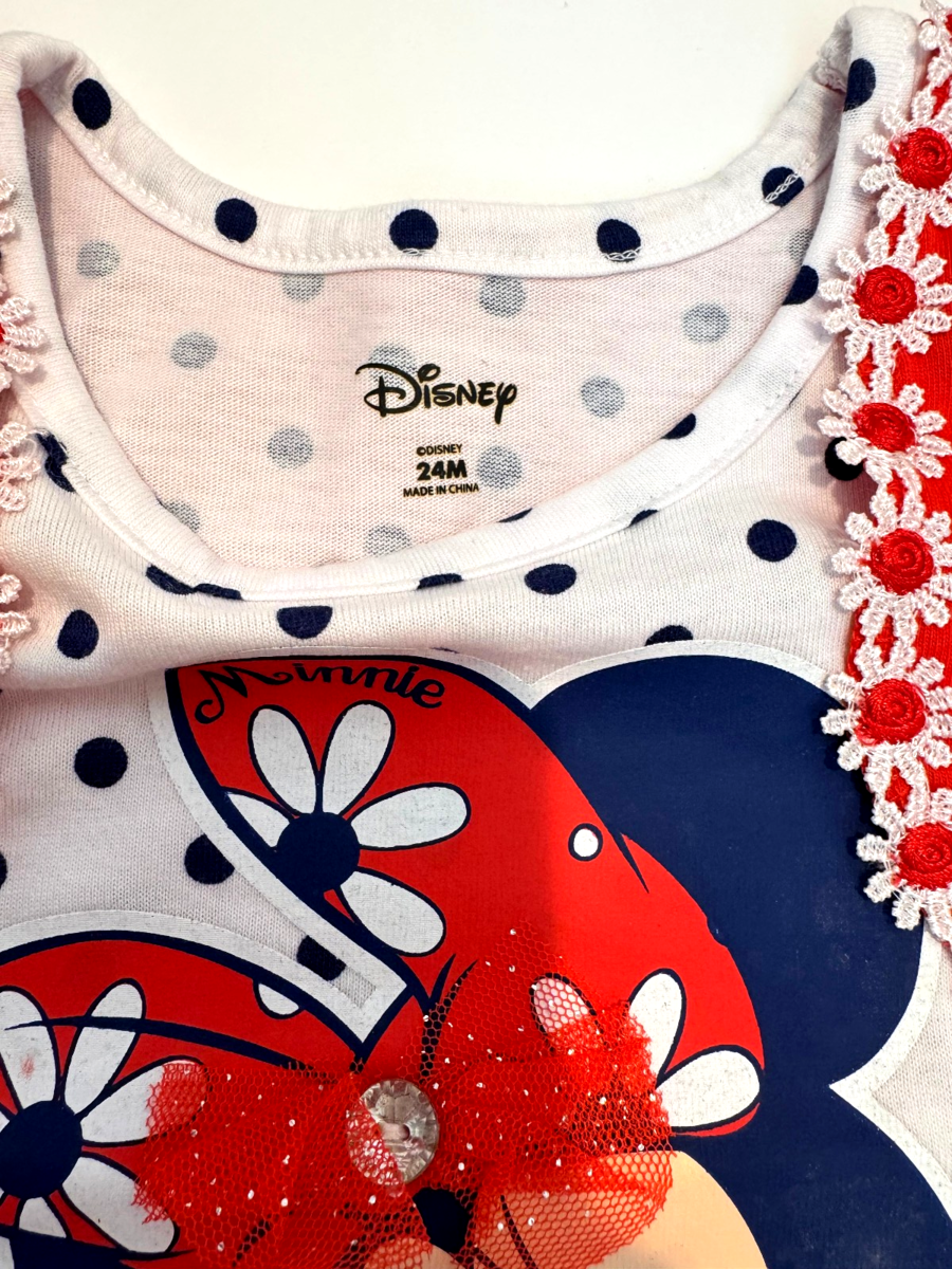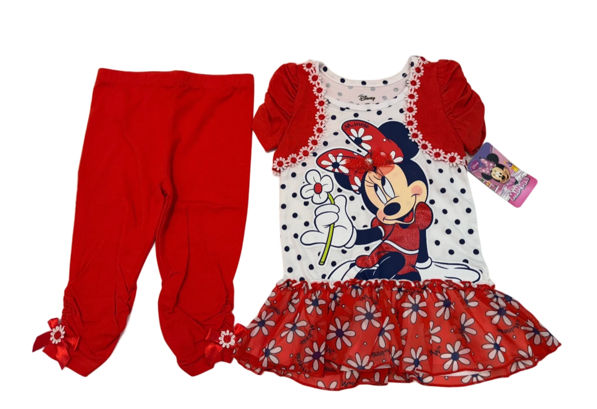 Disney Minnie Mouse Outfit 2 PC Pants Top Girls 24 Months Red Cotton 2% Spandex