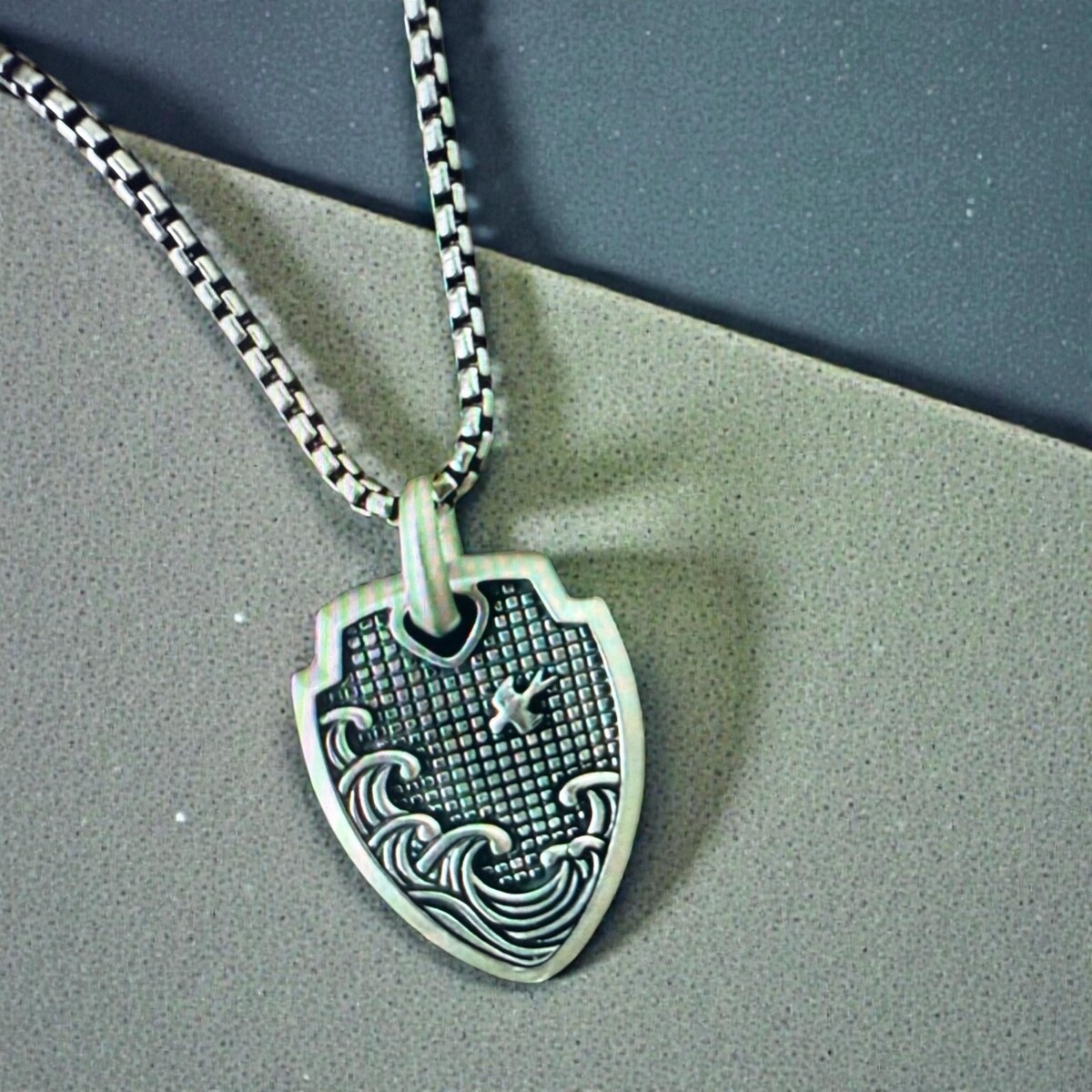 David Yurman .925 Sterling Silver Waves Shield Pendant & Box Chain 20"