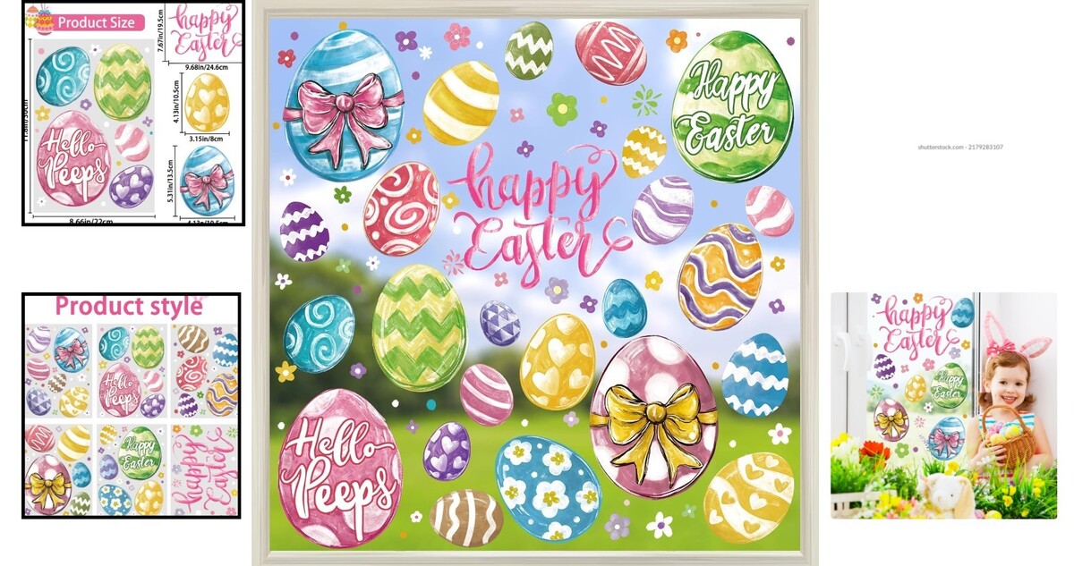 Festive 6 Sheets of Happy Easter Window Clings - Perfect for Every Surface