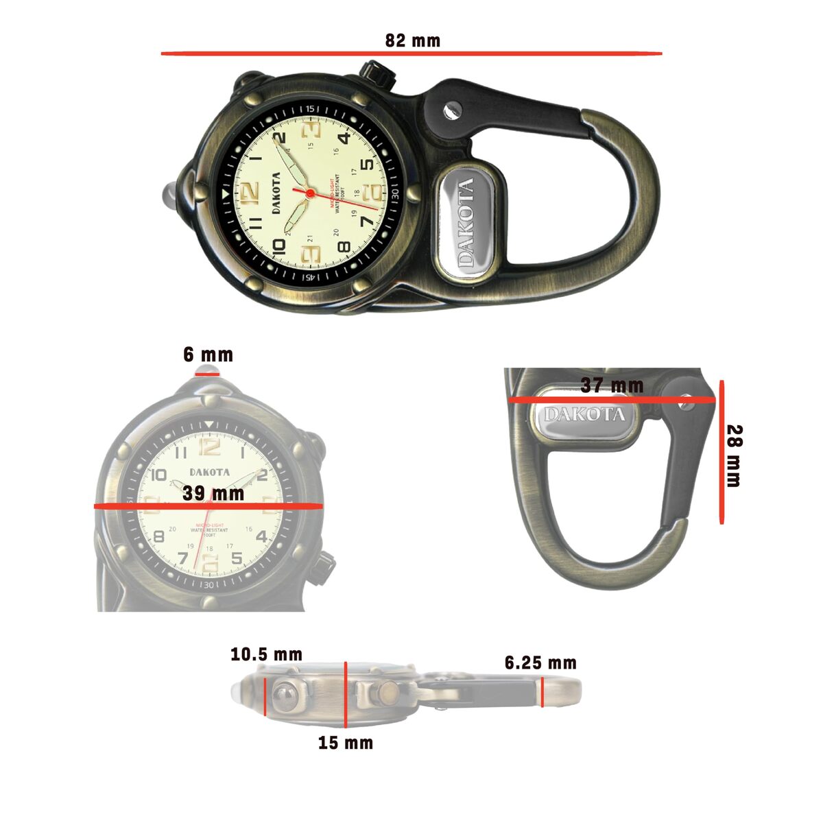 Dakota Mini Clip Watch with LED Flashlight for Fishing, Hunting & Outdoor Use