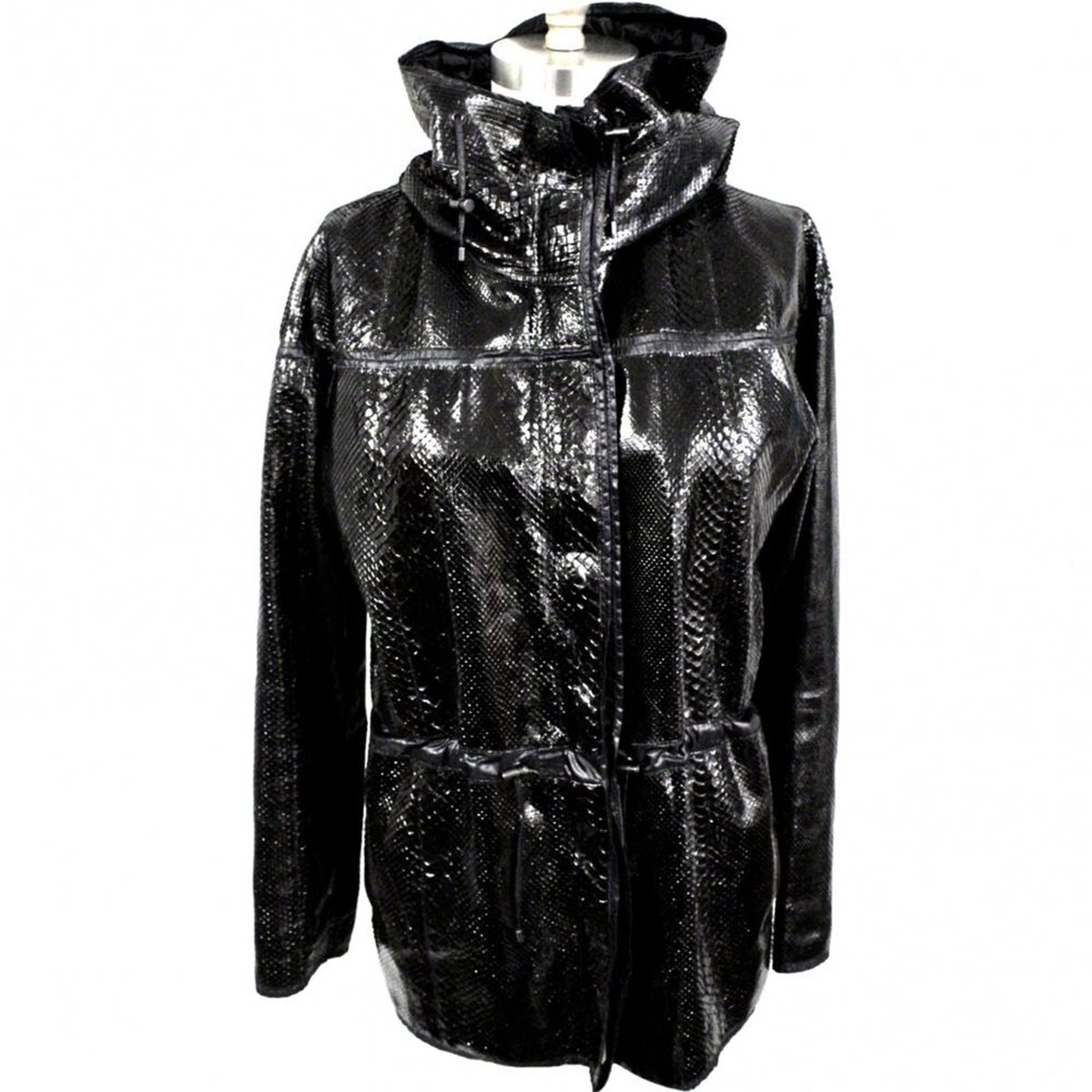 Lanvin Été 2012 Water-Snake Hooded Parka Coat Black Exotic Leather Riri Sz M