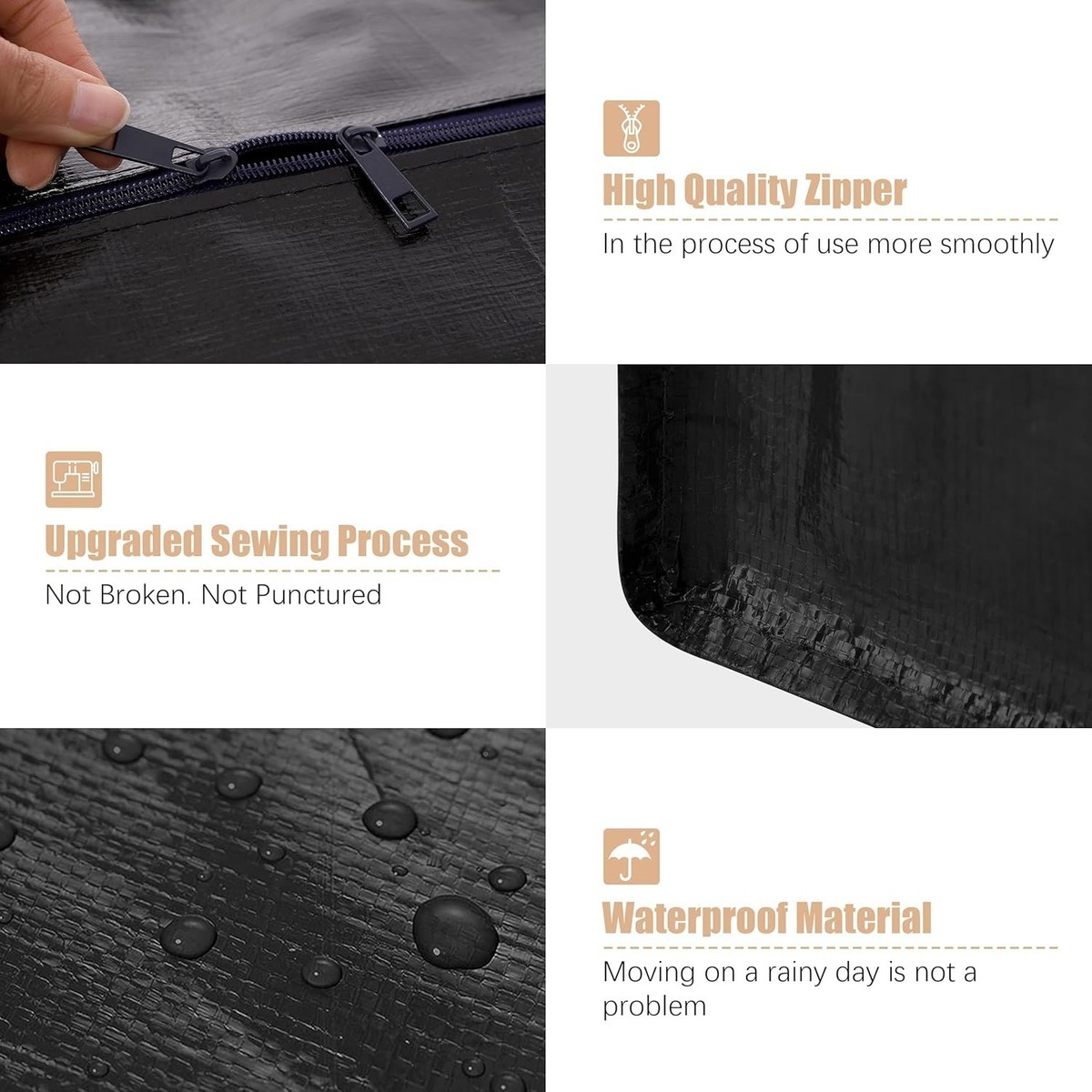 Durable Heavy-Duty Moving Bags - 6 Pack with Zipper Closure for Safe Transport