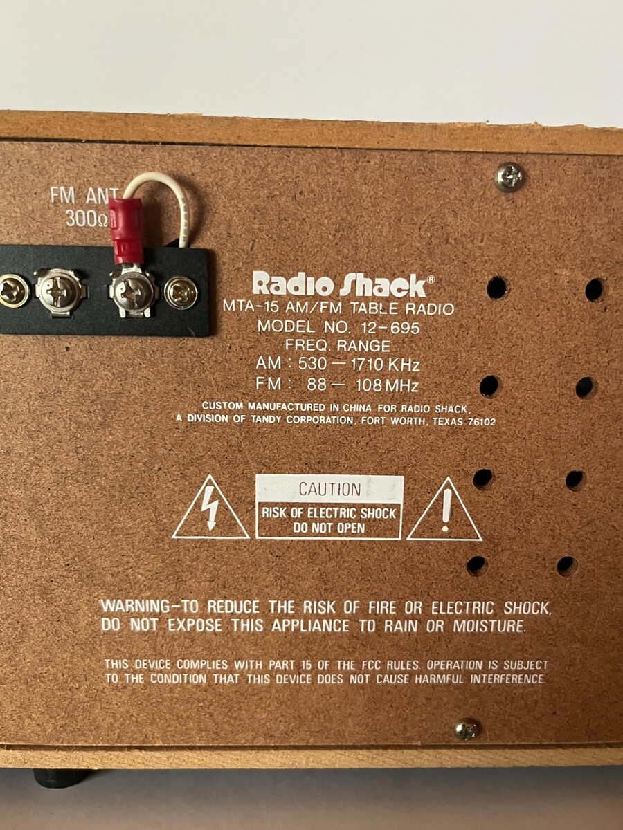 Radio Shack Realistic MTA-15 AM/FM Table Top Radio Model # 12-695 Works