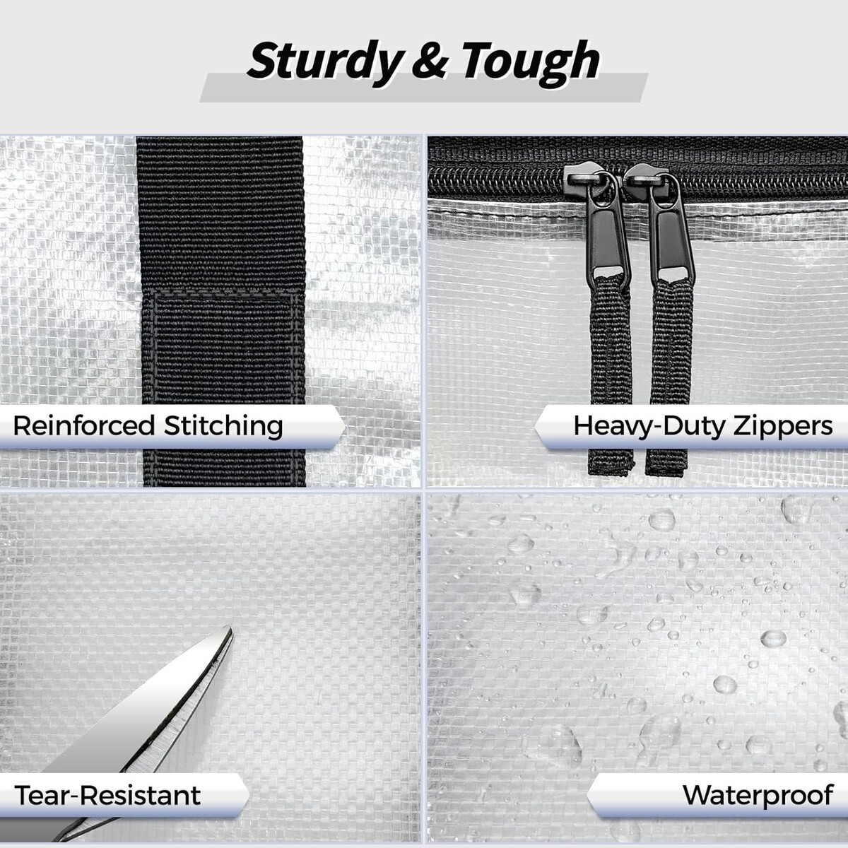 Heavy Duty Construction: Made with thickened plastic fabric, reinforced handles, and strong zippers for maximum strength and security.