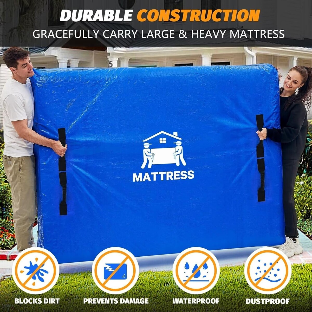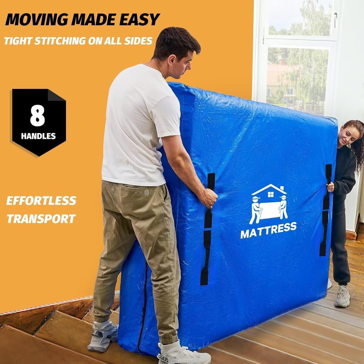 8 Extra-Large Handles: Equipped with 8 sturdy handles for easy lifting and maneuvering of even the heaviest mattresses.