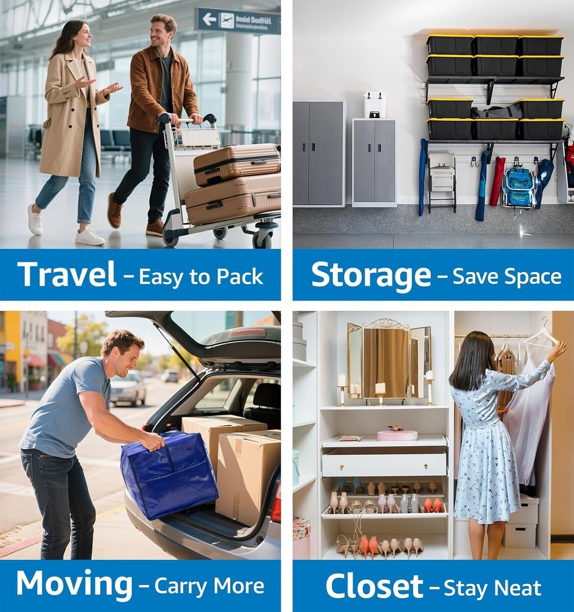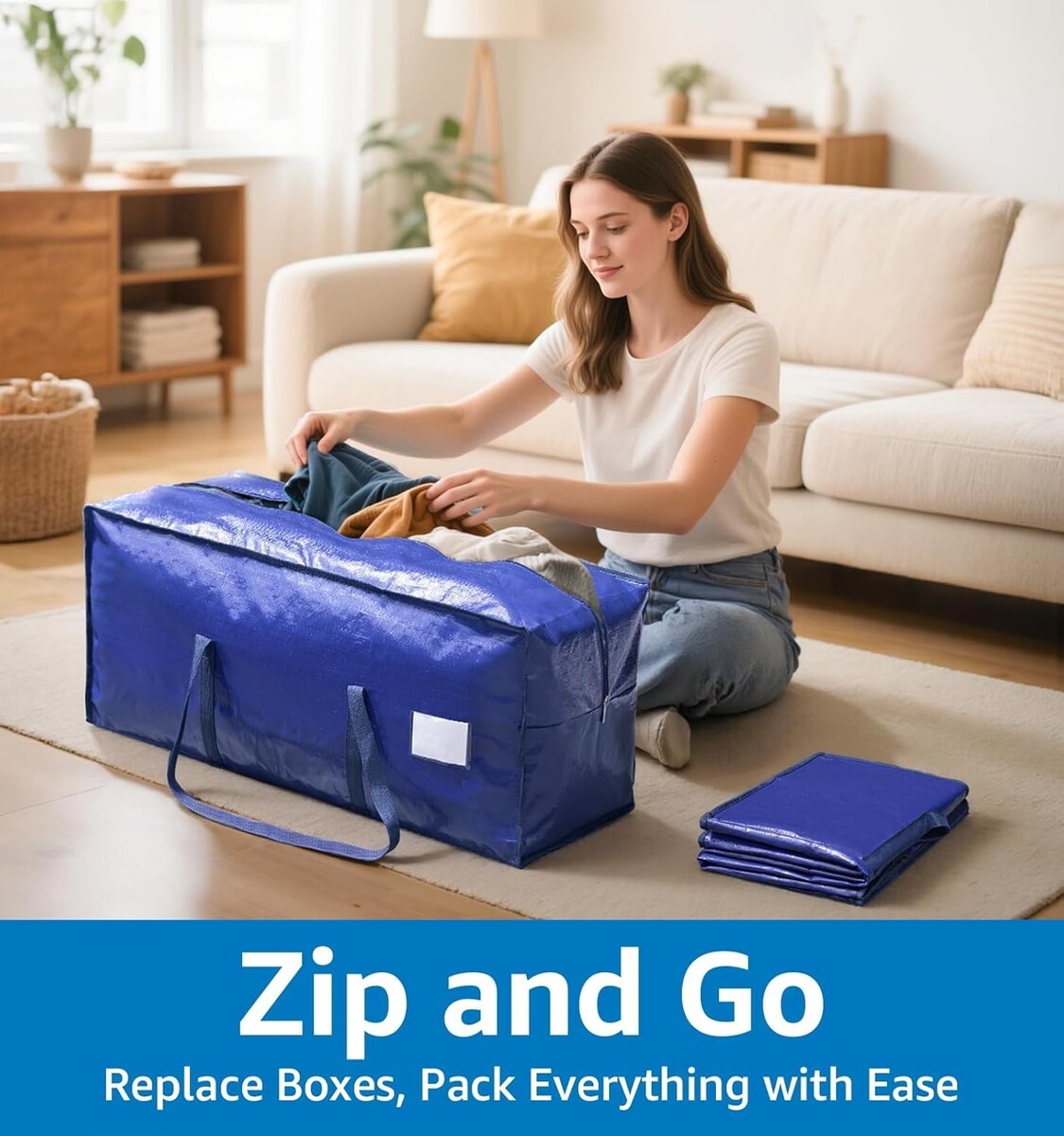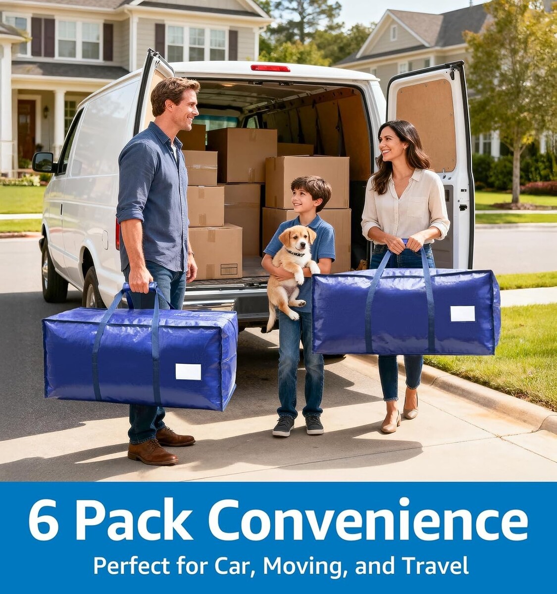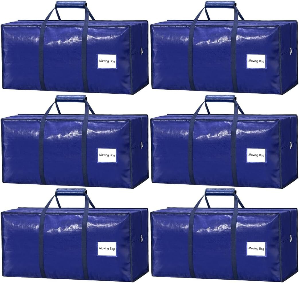 Reusable Heavy-Duty Moving Bags | 6 Pack Zippered Storage for Clothing & Bedding