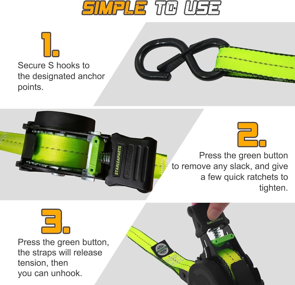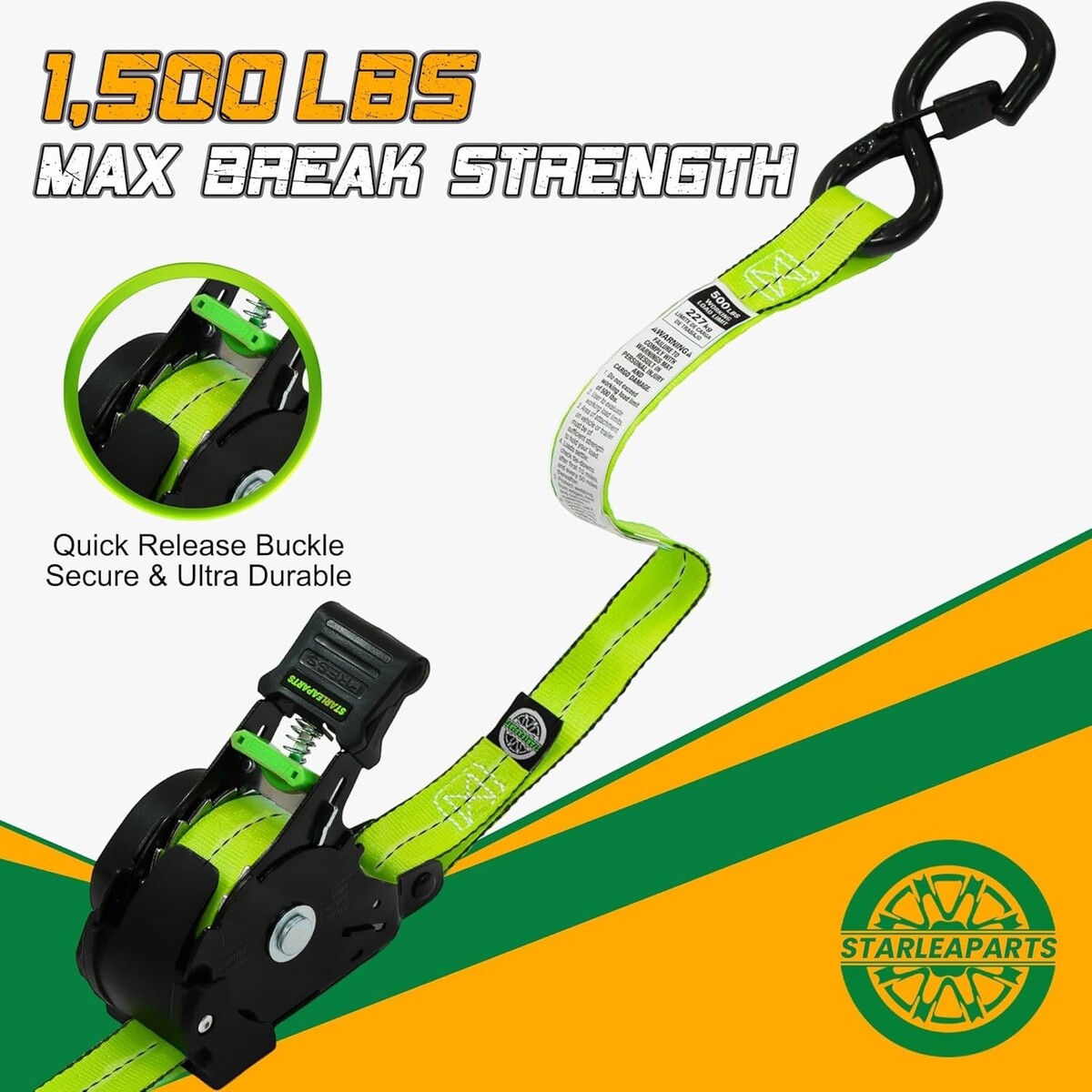 Secure Your Load: Elegant 4PK Retractable Ratchet Straps - 1,500lb Strength