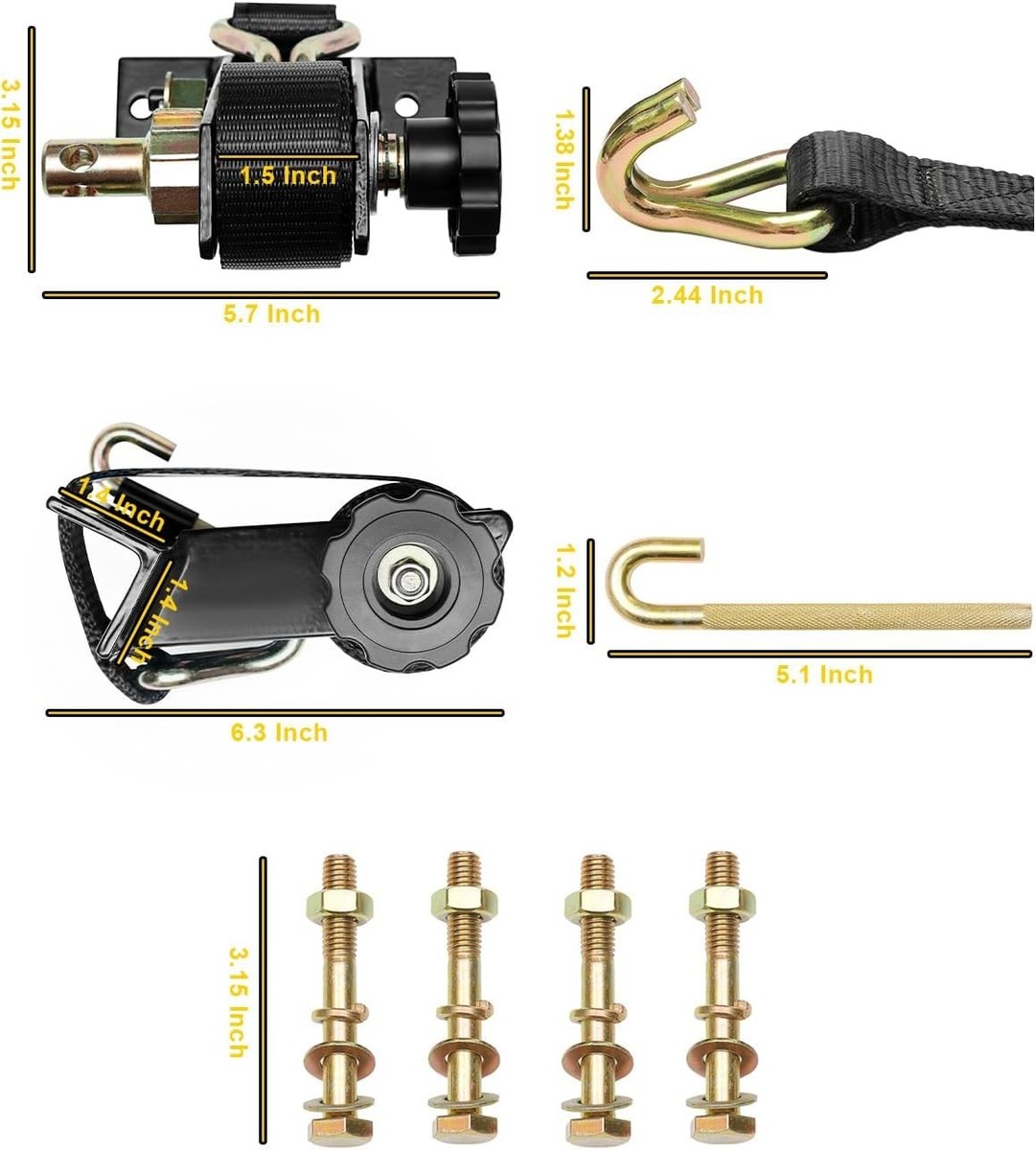 Wide Compatibility: 7.5 ft retractable tie down straps are suitable for boat trailers, utility trailers, cargo racks, and roof racks with easy bolt installation (bolts included).