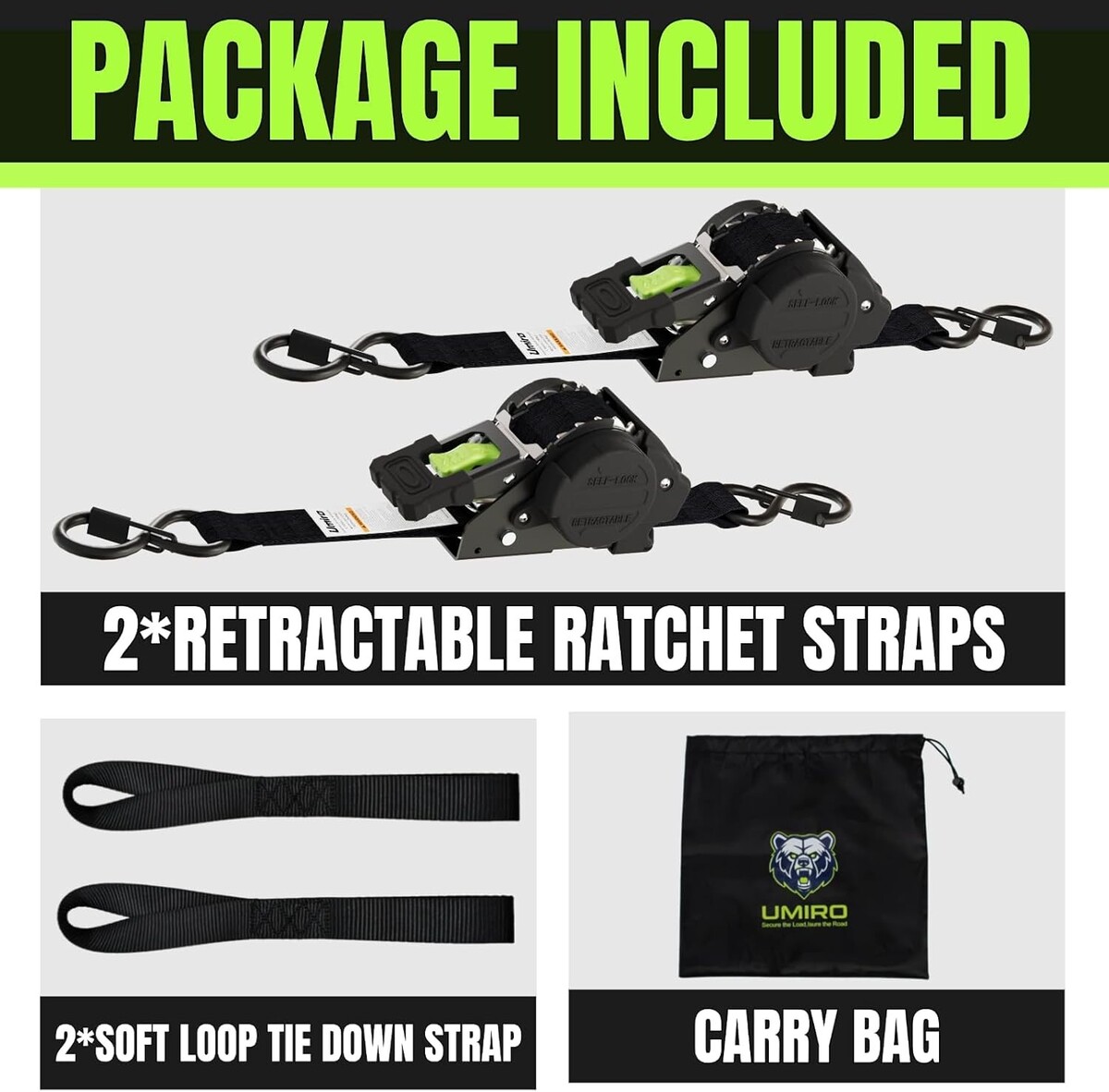 2 Pack Retractable Ratchet Straps - 1760lb Break Strength for Trucks and ATVs