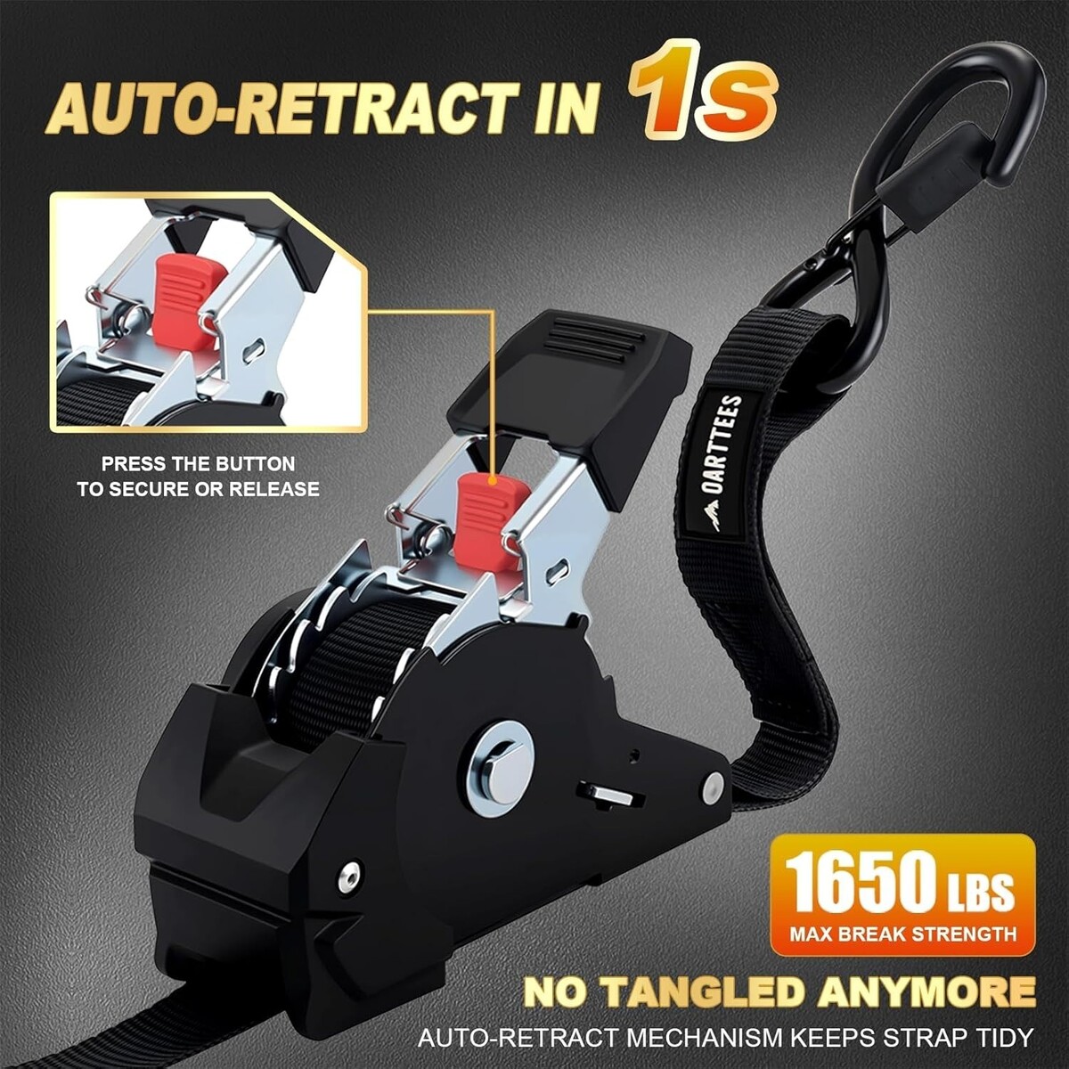 Self-Retracting Ratchet Straps 1" x 10ft - Secure Up to 1650lbs of Cargo