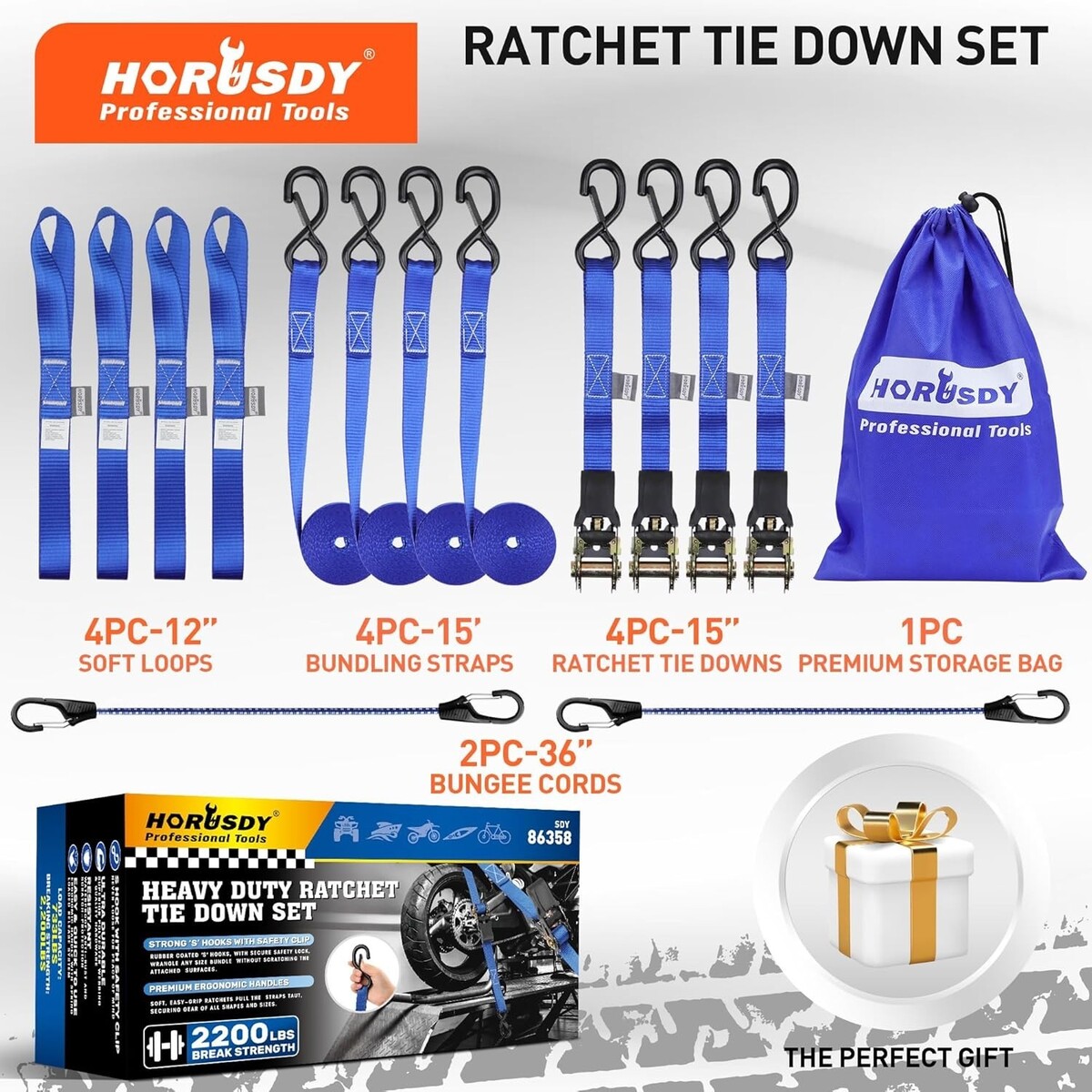 Ultimate Cargo Security: 4-Pack Heavy-Duty Ratchet Straps & Bungee Cords