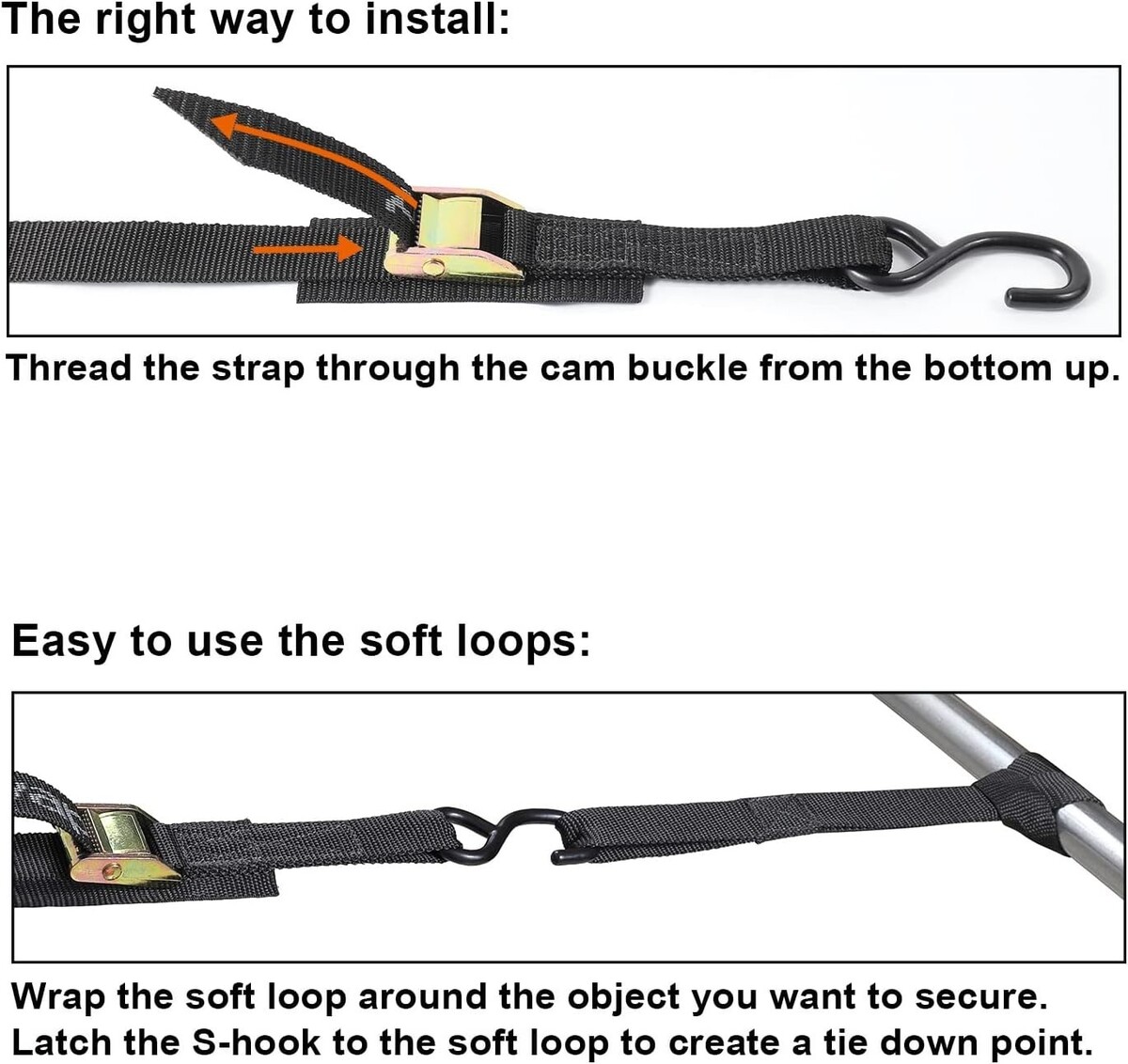 4 X Cam Buckle Strap With Hook, 4 X Soft Loops |
