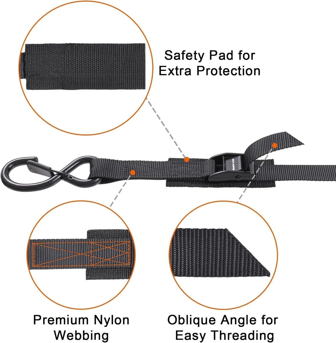 Safety Pad for Extra Protection: A nylon webbing safety pad positioned under the cam buckle protects your motorcycle from scratches while being transported.