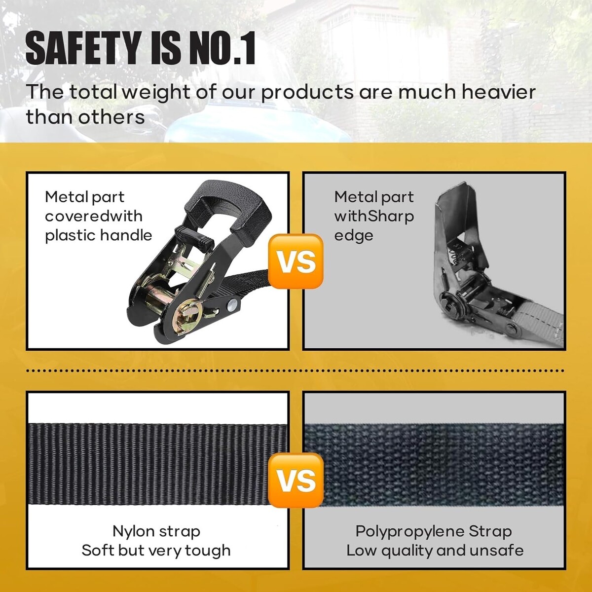 Quality Materials: Made from high-quality nylon, these ratcheting straps are soft yet incredibly tough, ensuring durability and wear-resistance, even during demanding conditions.