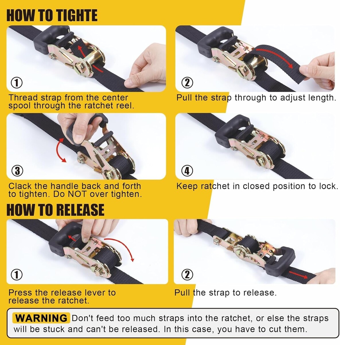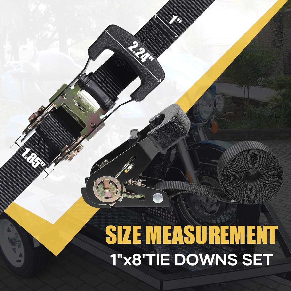 No Hook Ratchet Straps - 1" x 8' with 1860lbs Strength for Secure Cargo