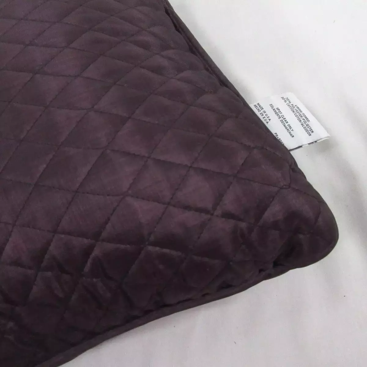 Quilted pillow has diamond quilting with piped edge.