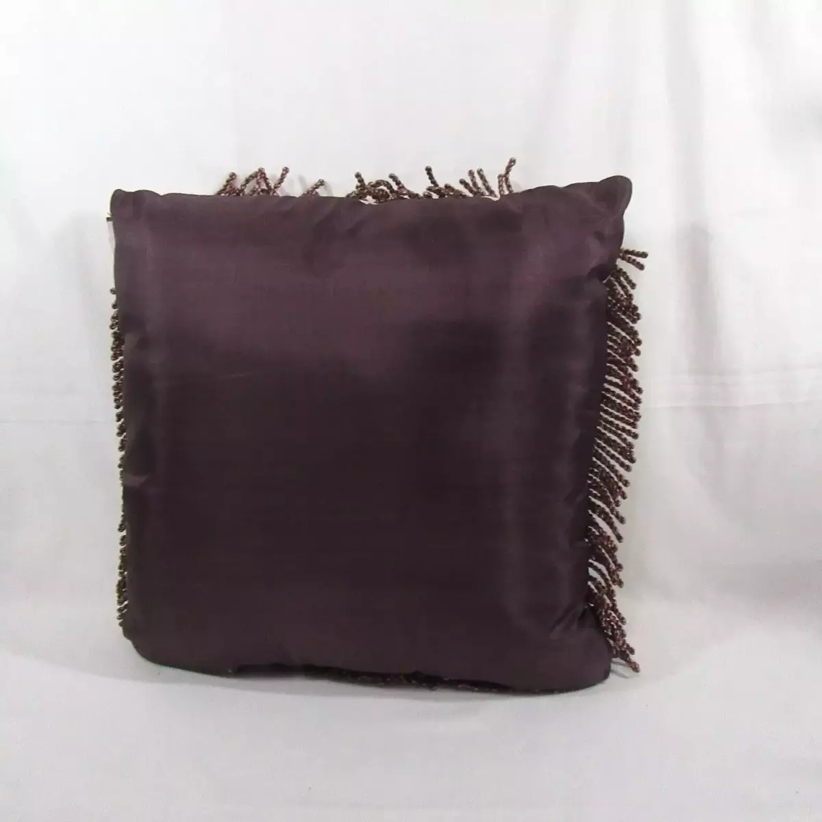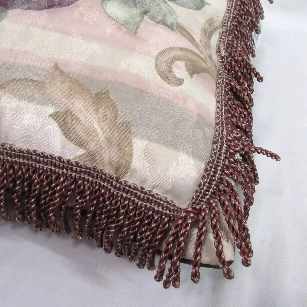 Floral pillow is framed with fringe accents.