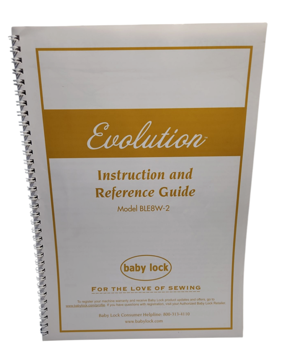 Baby Lock Evolution BLE8W-2 Instruction User Reference Guide Manual Spiral Bound
