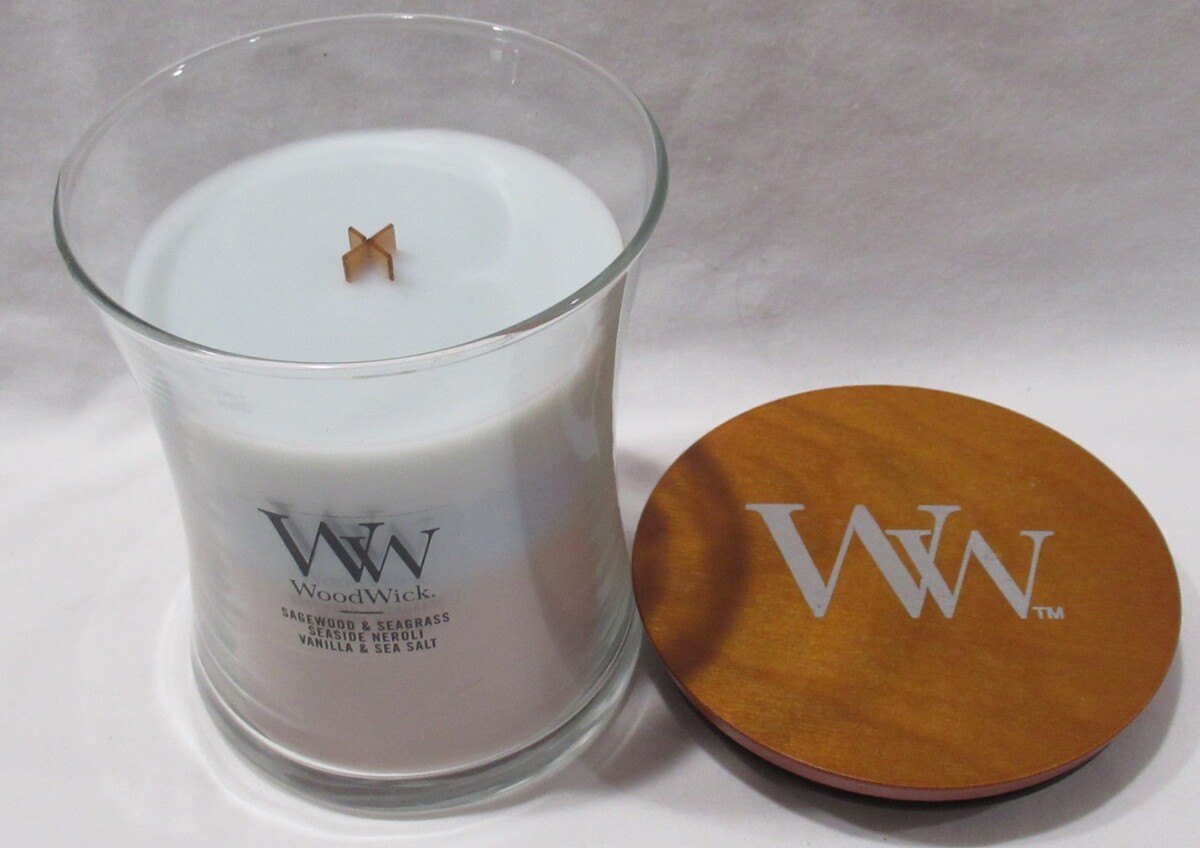 Yankee WoodWick Hourglass Candle Jar 9.7 oz Beach OCEANIS TRILOGY crackles burns
