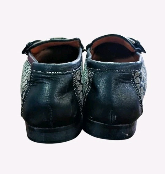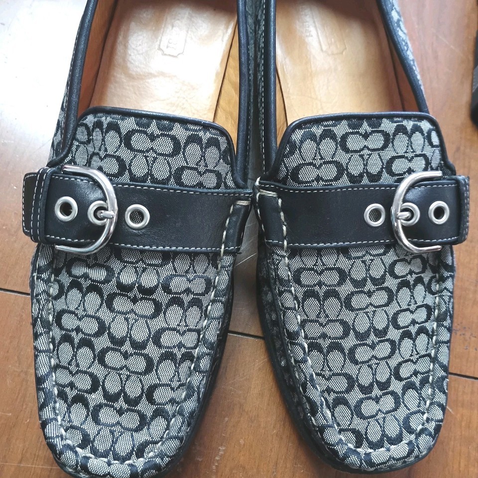 Coach Emery Black Canvas And Leather Loafers With Silver Buckle Size 8.5
