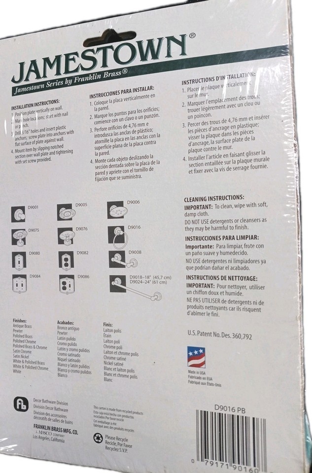 Jamestown Series Brass Towel Ring By Franklin Brass 9016 NIB