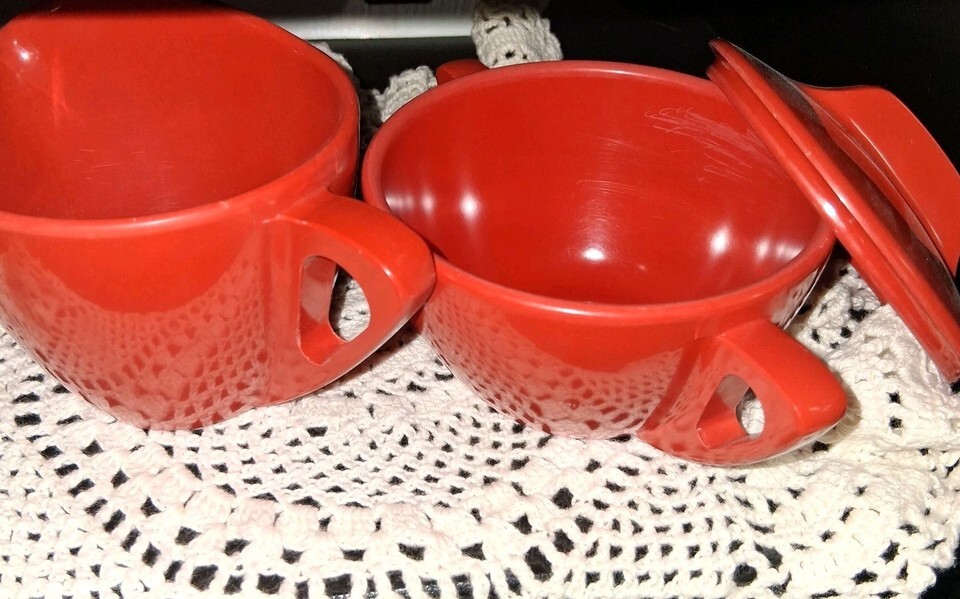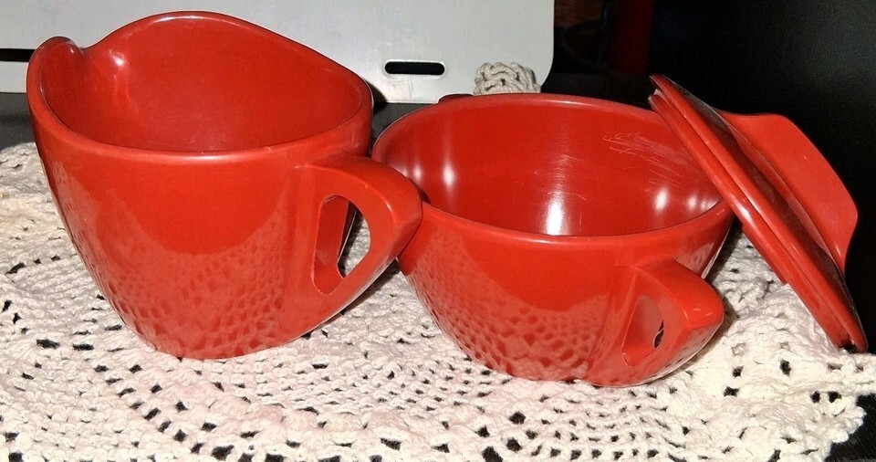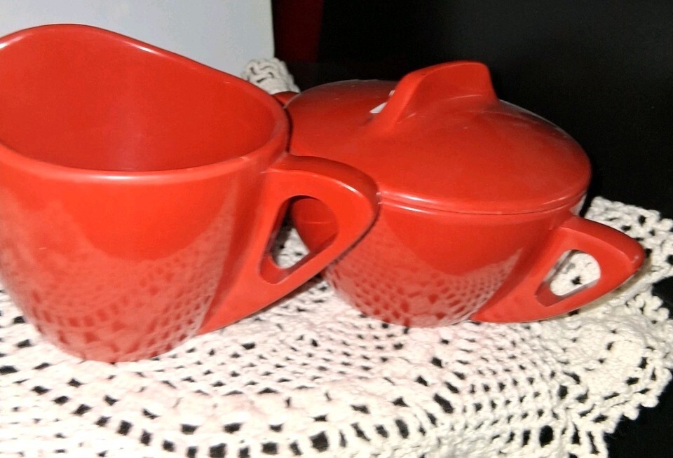 Vintage Red Ceramic Sugar Bowl and Creamer and 48 similar items
