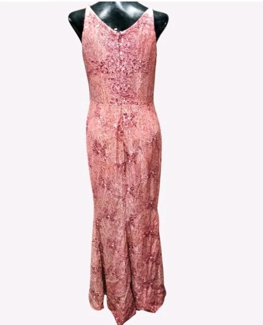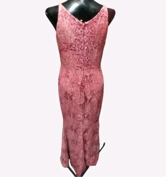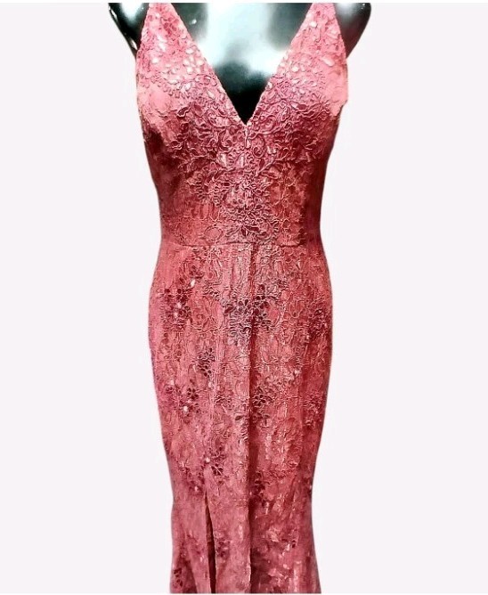 Dress the Population Dusty Rose Lace Evening Gown V-Neck Slit Maxi Dress Size M