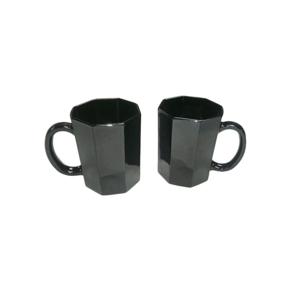 Vintage Arcoroc Black Octime Coffee Cups Mugs France Black Octagon Set of 2