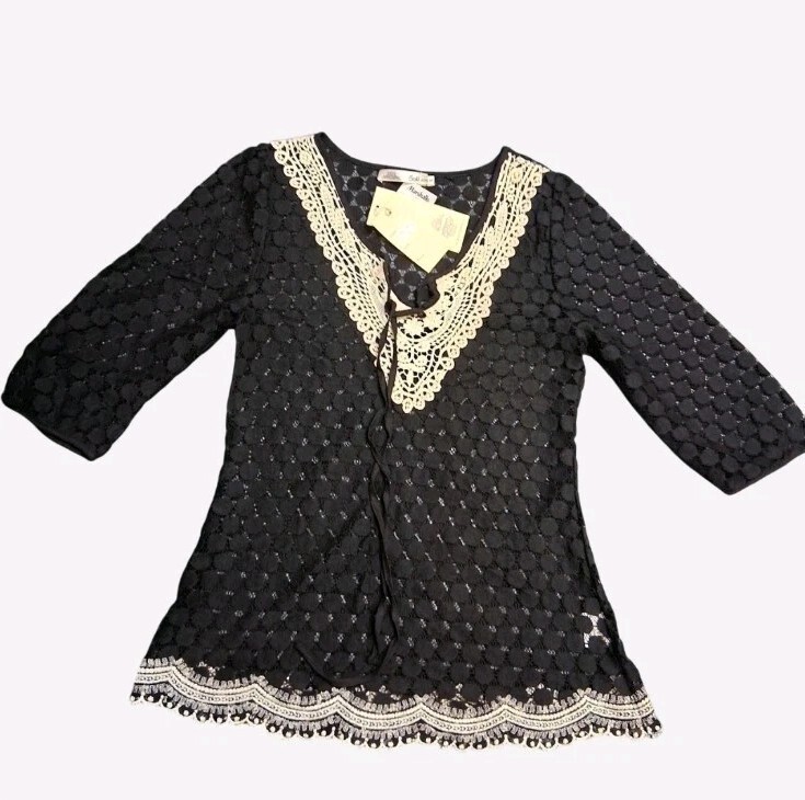 Solitaire Black Lace Trim Tunic Top Size Small NWT