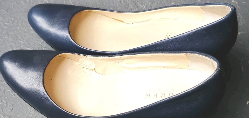 Navy Blue Leather Pumps With A Rounded Toe Size 9.5 M Lauren By Ralph Lauren.