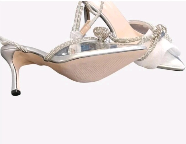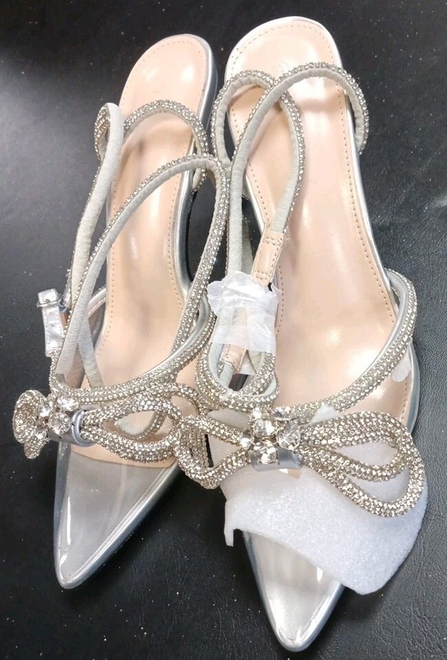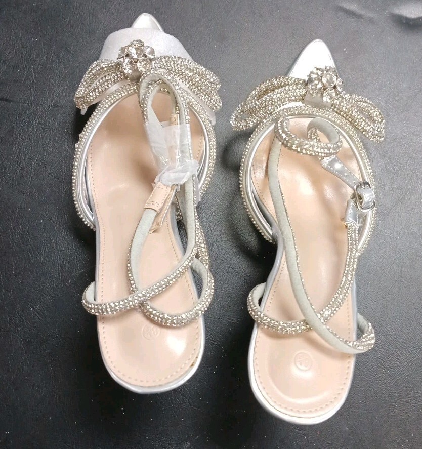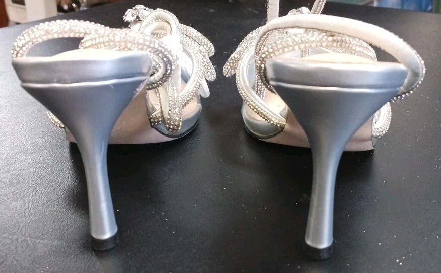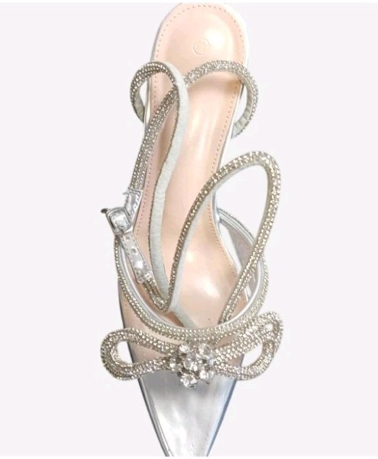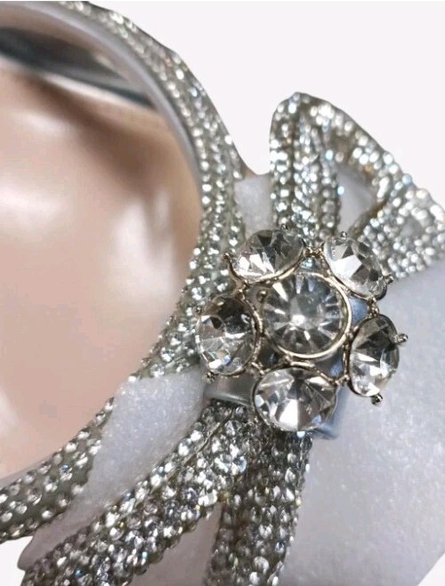 Clear And Silver Rhinestone Lace Up The Leg Dress Heels Size 8.5