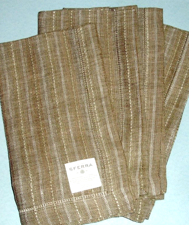 Sferra Spectrum Natural Tan Stripe Linen Dinner Napkins 4 PC Hemstitch 20x20 New