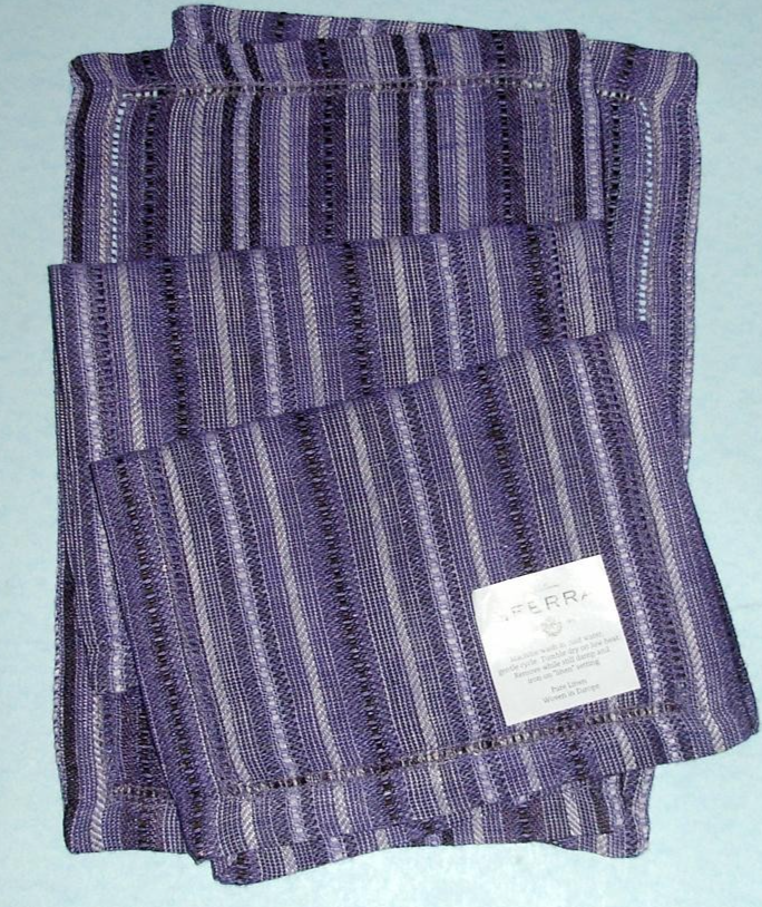 Sferra SPECTRUM Grape Purple Linen Cocktail Napkins Tonal Stripe 4 PC. 6x9" New
