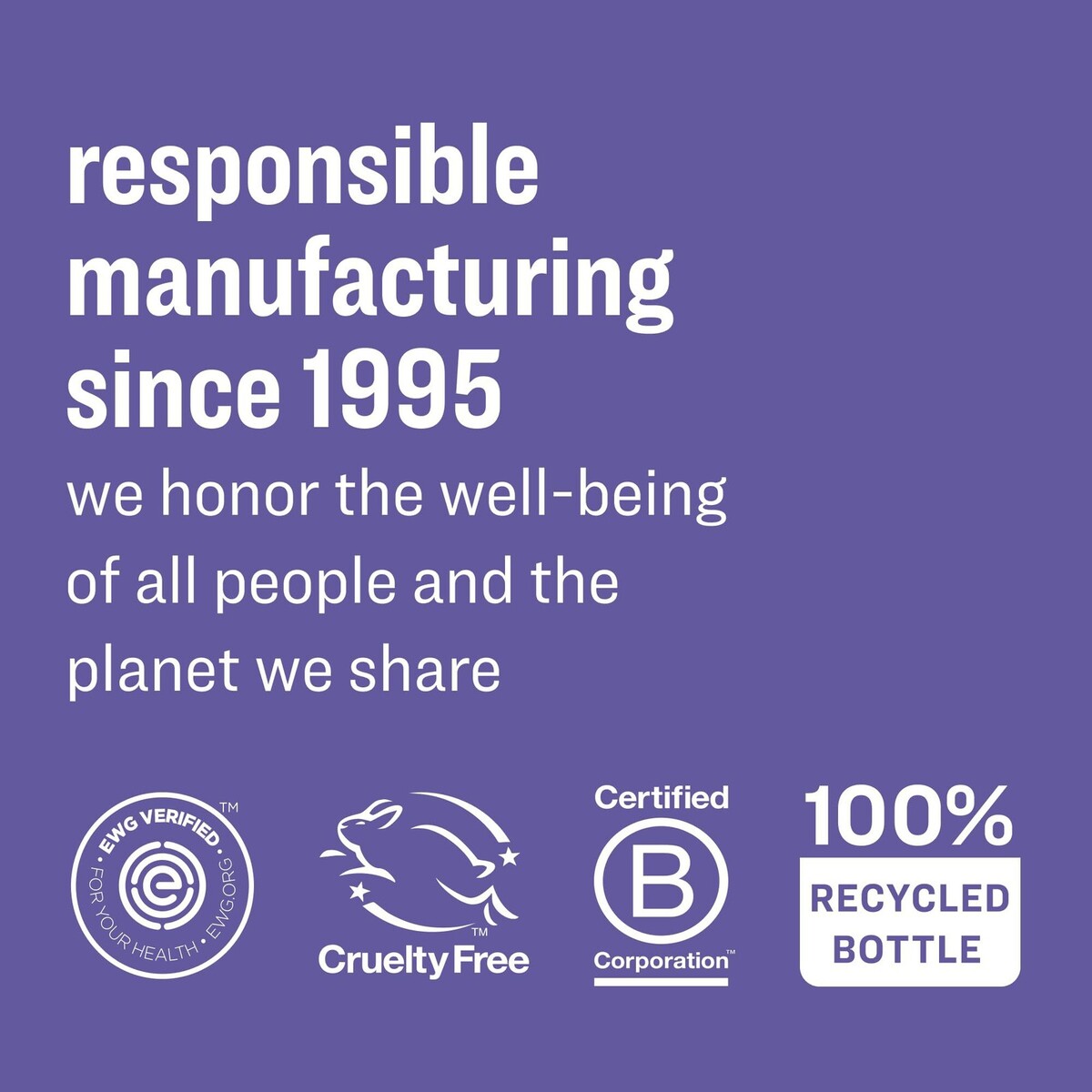 ? CONTAINS: (1) 32 Ounce 100% Recycled Plastic Bottle of Everyone 3in1 Lavender and Aloe Soap. ? SCENT: Relax in a classic, calming blend of lavender essential oil and aloe extract. ? USE: Use on hair and body to wash away dirt. Use in tub to wash away worries. ? CONSCIOUSLY CRAFTED: Our products are EWG verified and made with love and without parabens, phthalates or synthetic fragrances. We partner with organic and regenerative growers to ensure the highest quality blends in each and every bottle. ? COMMITTED TO PEOPLE PLANET: We?re a family-owned B Corp built on honoring the well-being of all people and our planet. Our products are designed, developed and manufactured in Marin County, California, in a zero-waste, solar-powered facility.