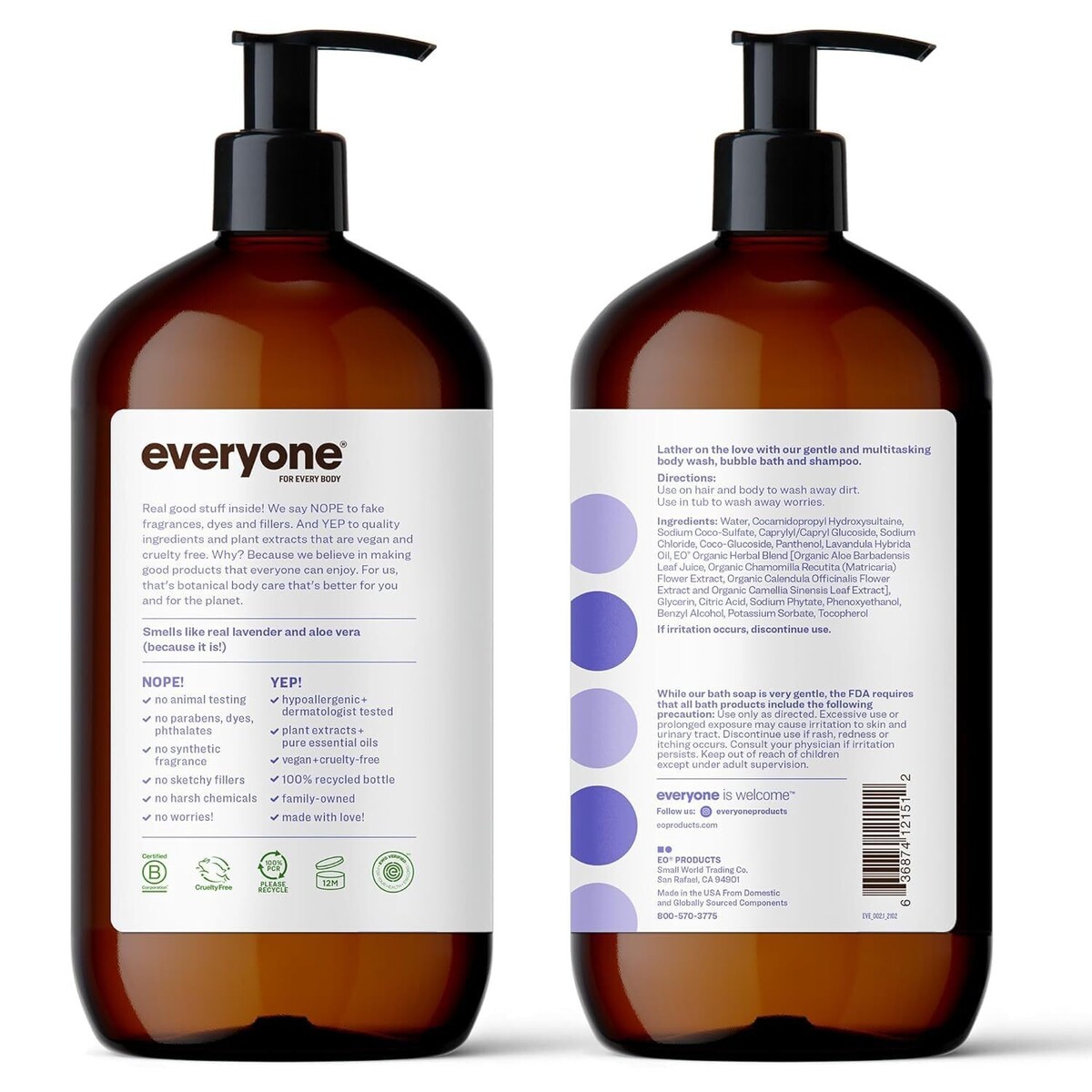 Everyone 3-in-1 Soap, Body Wash, Bubble Bath, Shampoo, 32 Ounce (Pack of 1), Lavender and Aloe, made with Essential Oils for Men and Women