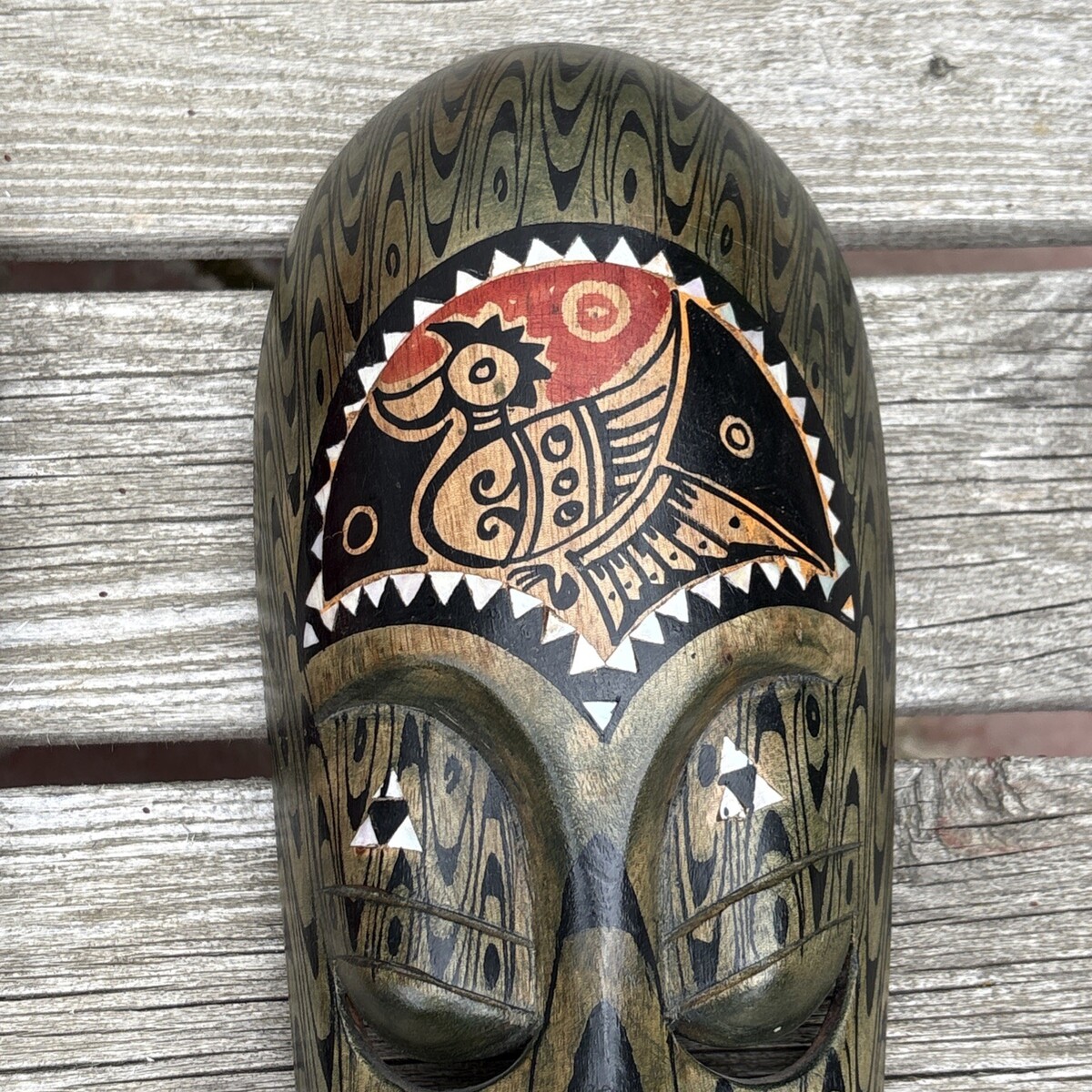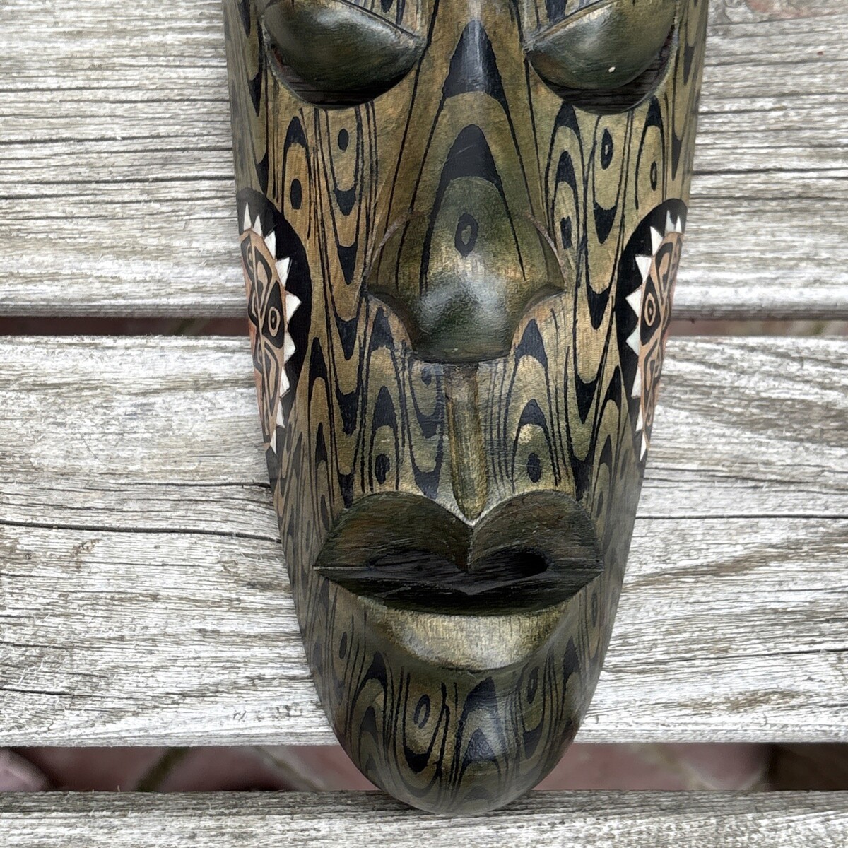 Vintage Indonesian Wood Mask Lot Hand Carved Tribal Art Painted Face Green Red